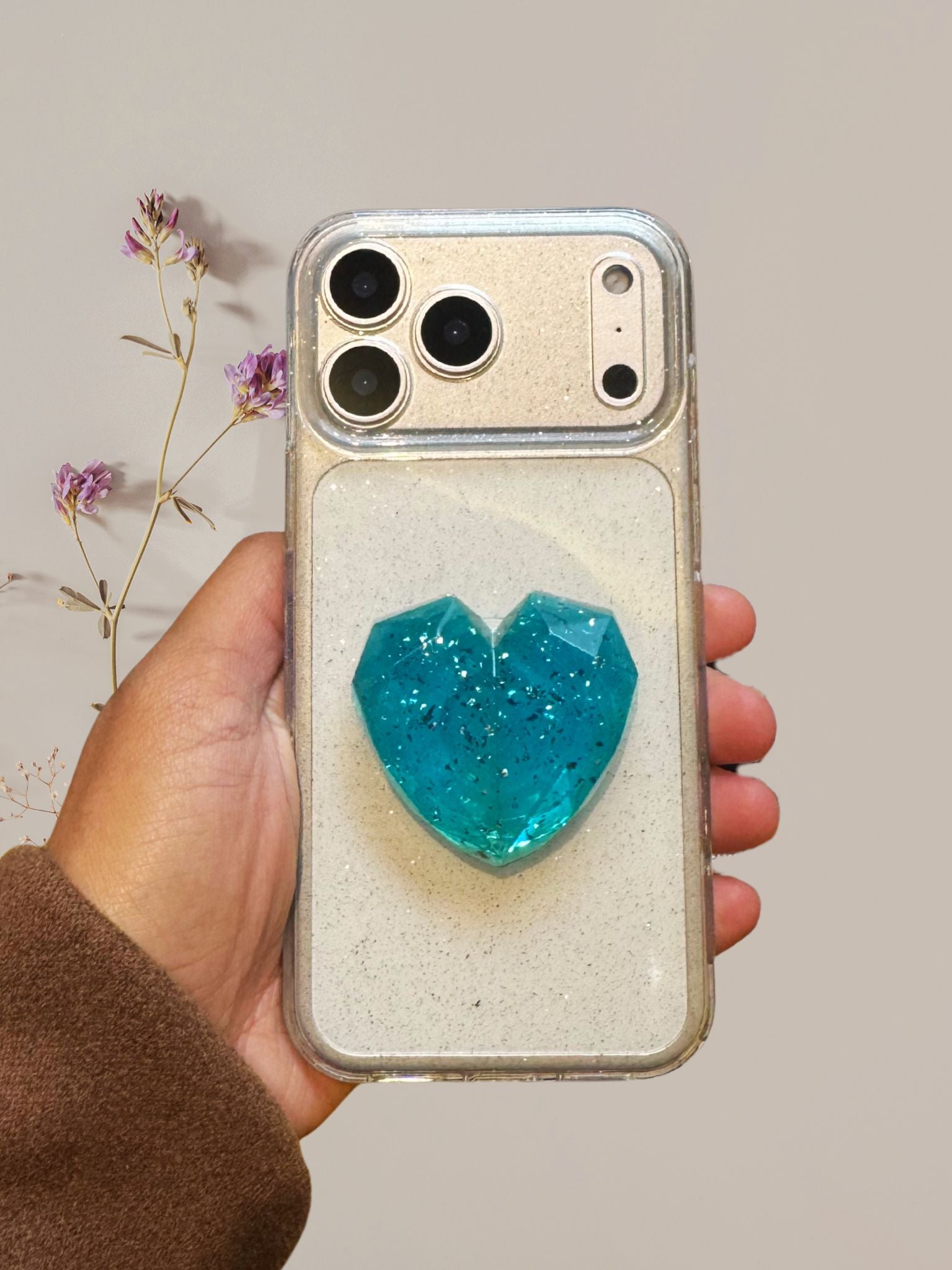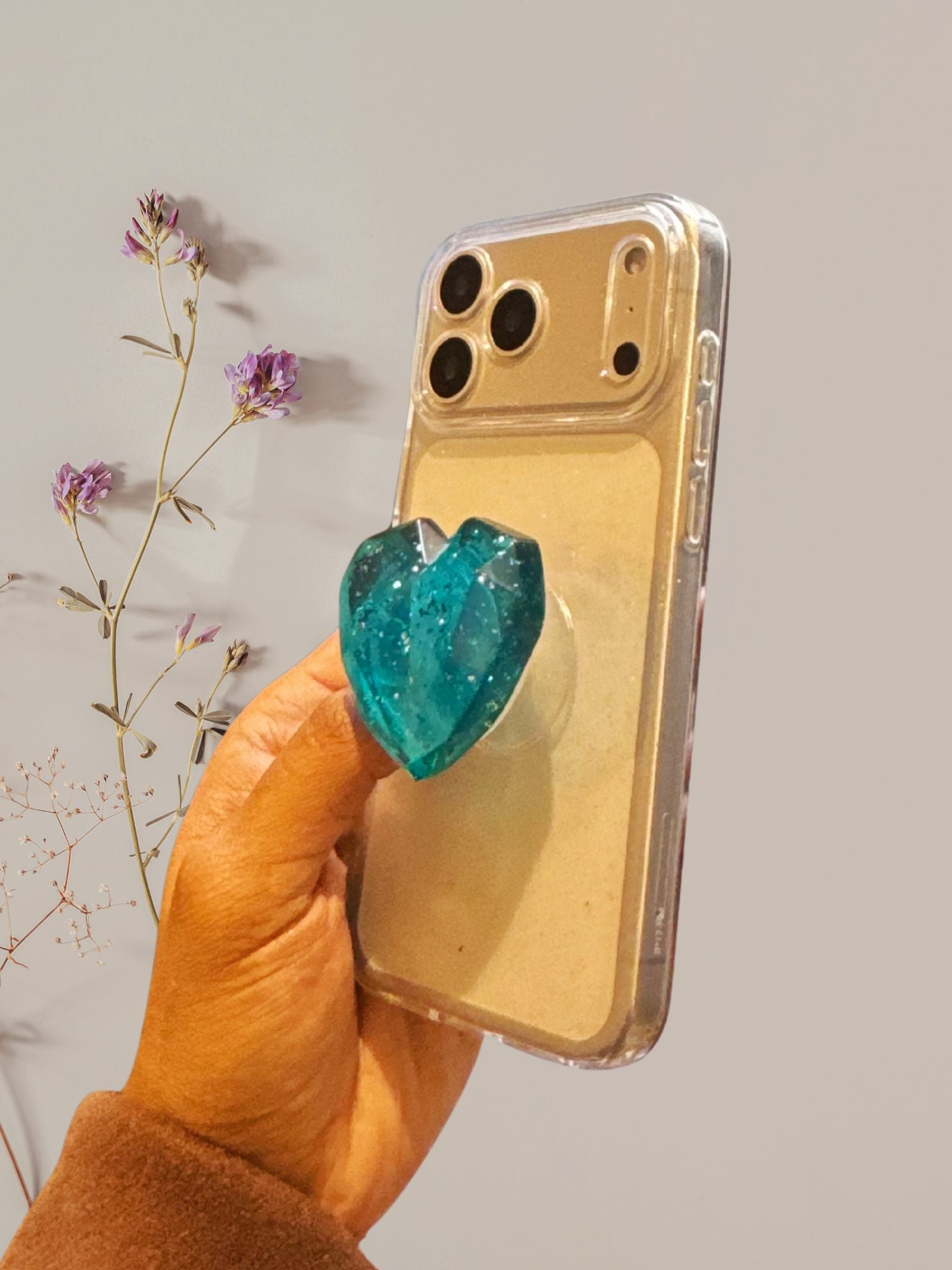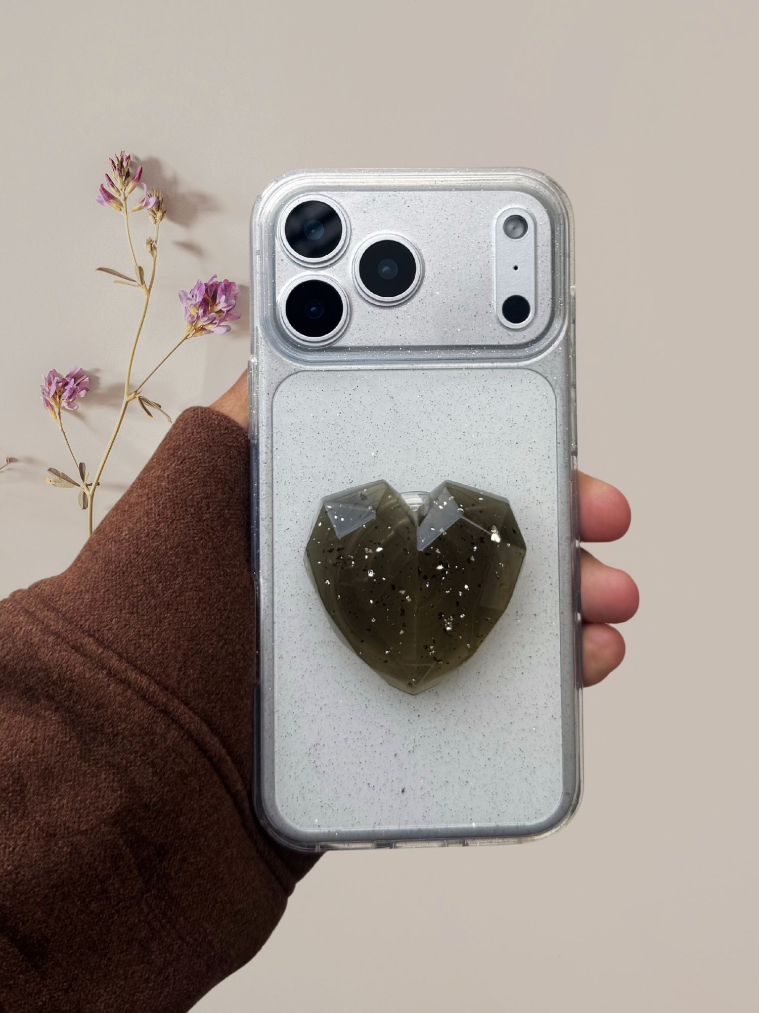 3D Glitter Heart Phone Gripper Holder