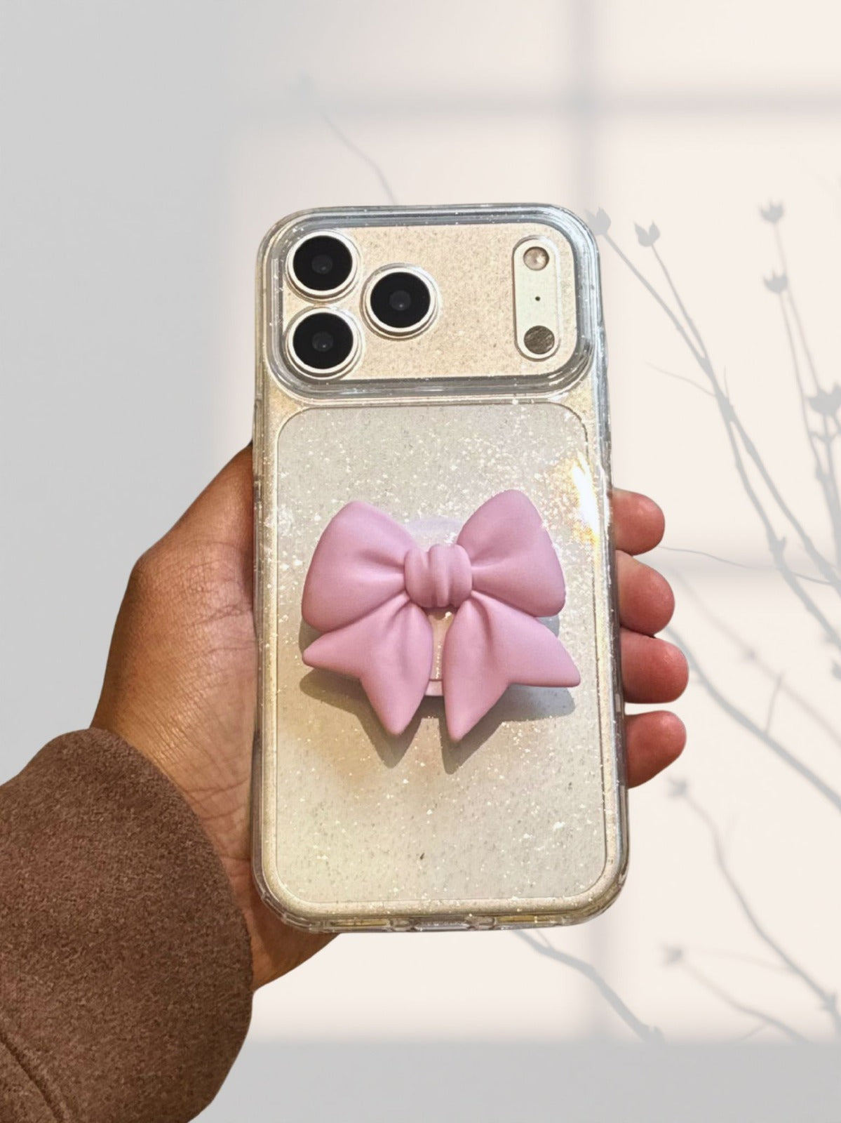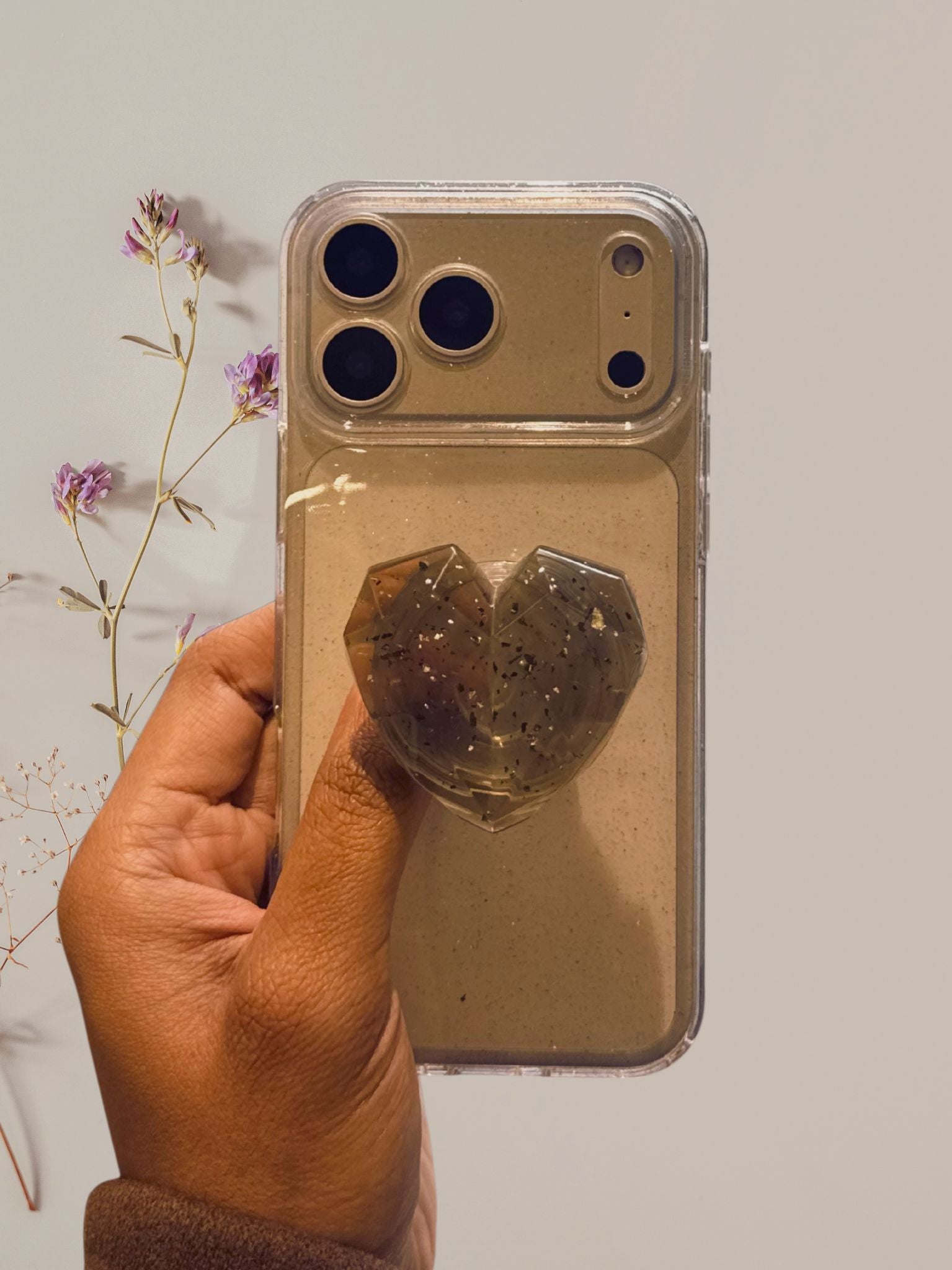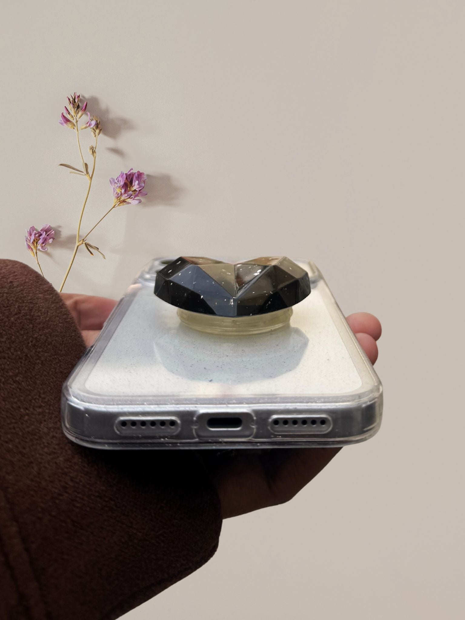 3D Glitter Heart Phone Gripper Holder