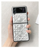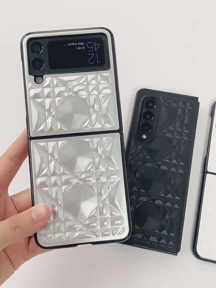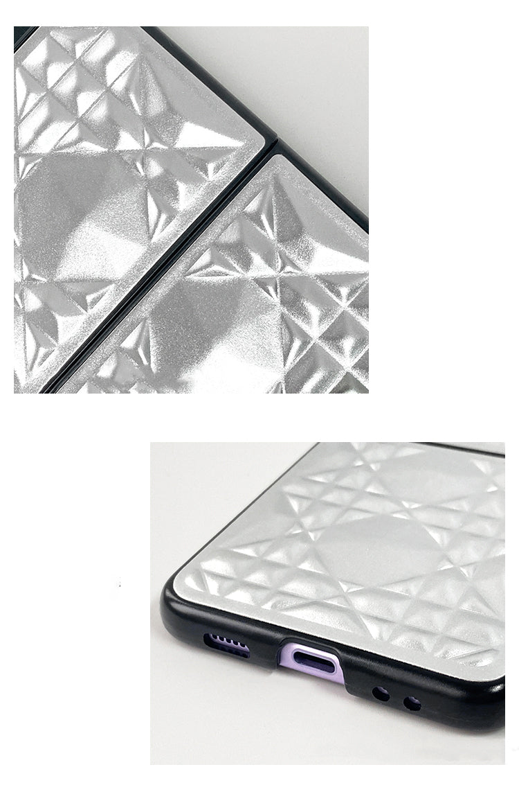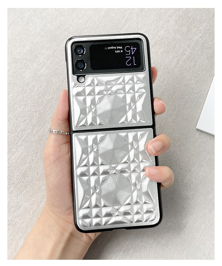 Royal 3D Diamond Pattern Grid Matte Silver Case in a sleek new design for the Samsung Galaxy Z Flip 3 and Galaxy Z Flip 4.