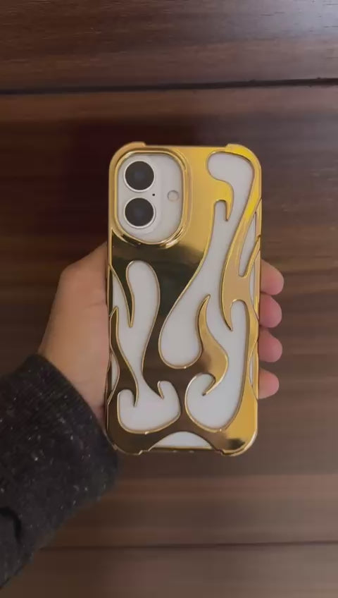 3D Flame Gold Electroplated Luxury Cover in a sleek new design for the iPhone 15, and iPhone 16 Series Models.