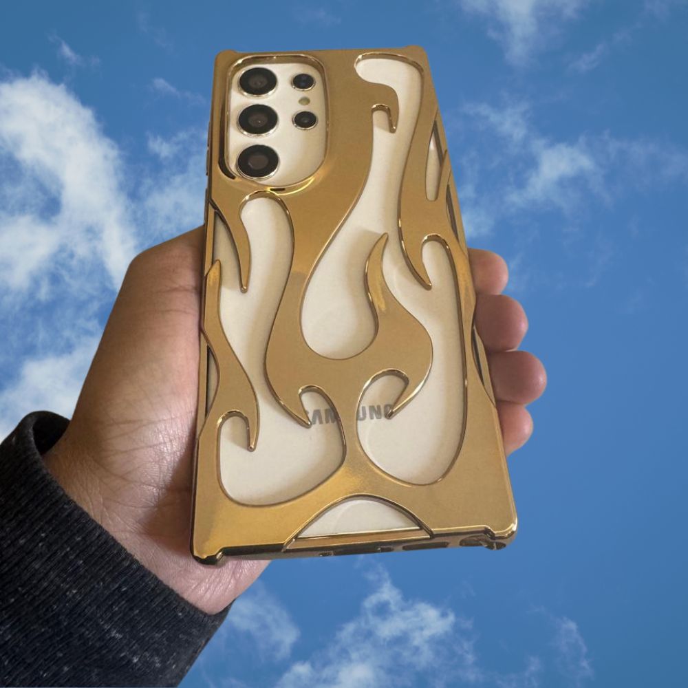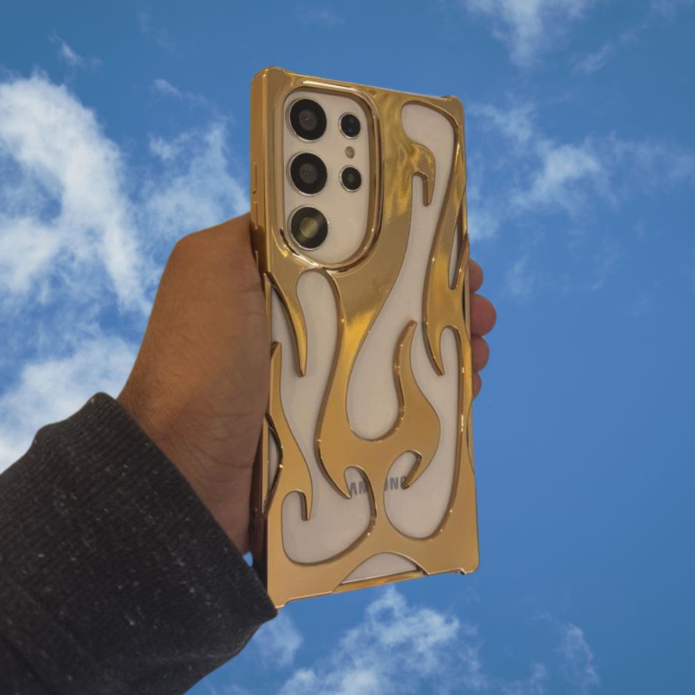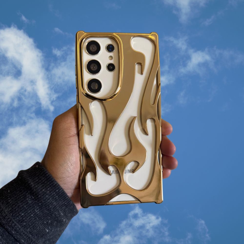 3D Flame Gold Electroplated Luxury Cover in a sleek new design for the Samsung Galaxy S25 and S25 Ultra.