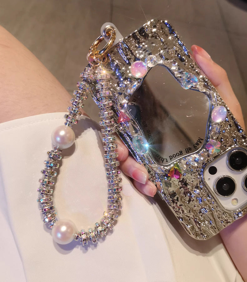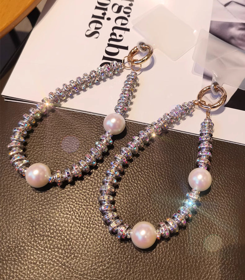 Bling Diamond Stones Luxury Phone Charm made with real diamond rhinestones and pearls Can be Attached to any Phone Cover of any Brand.