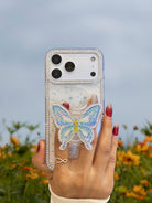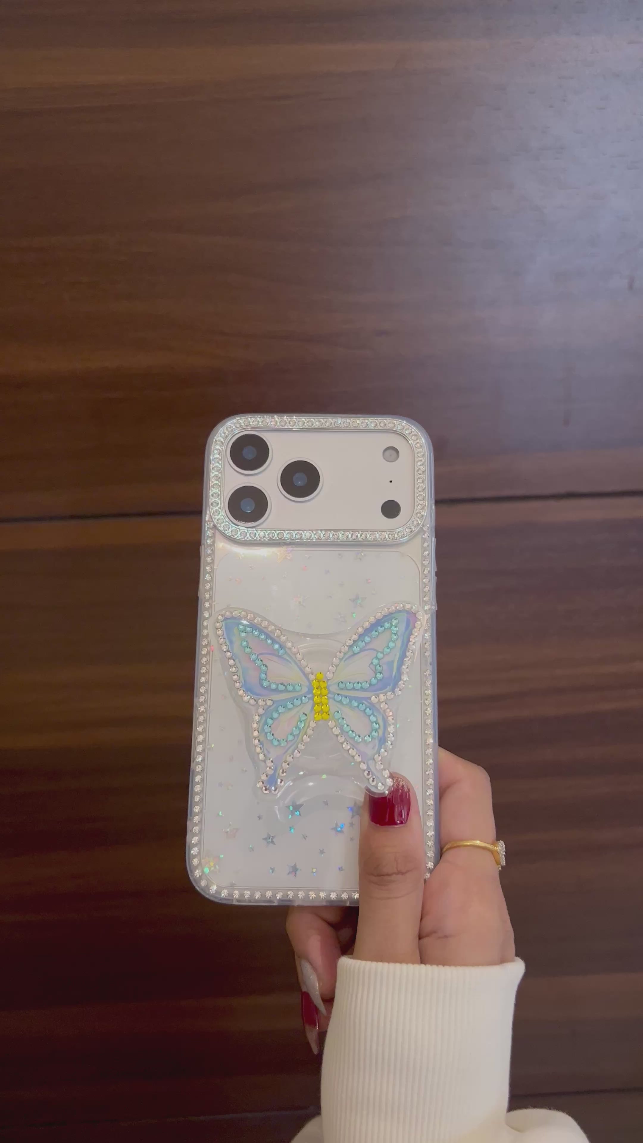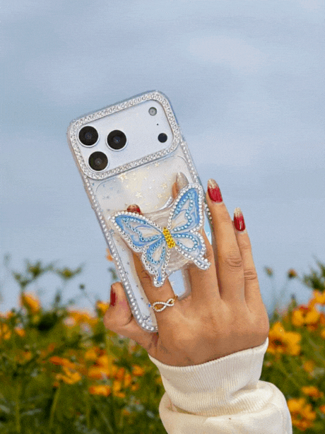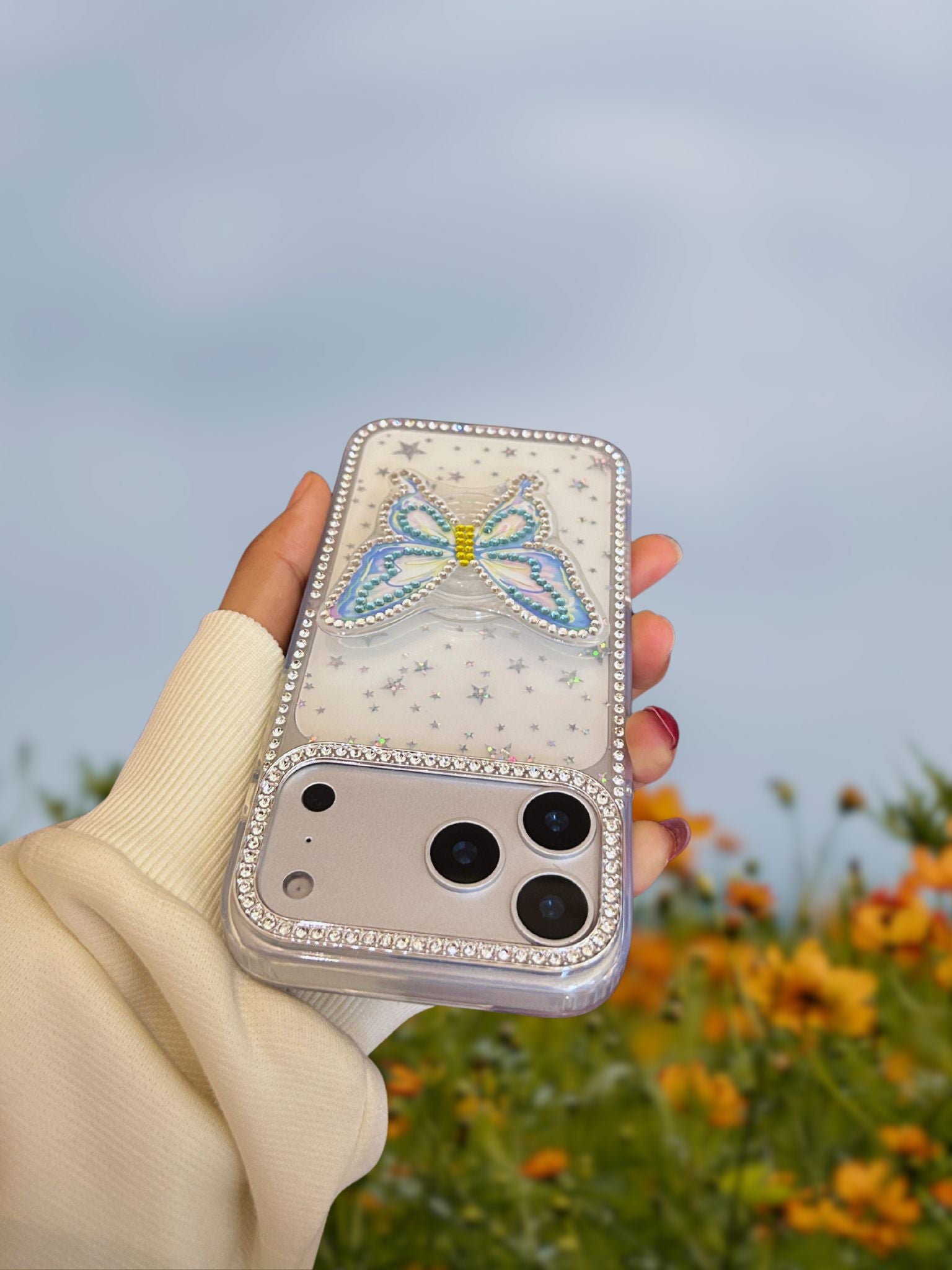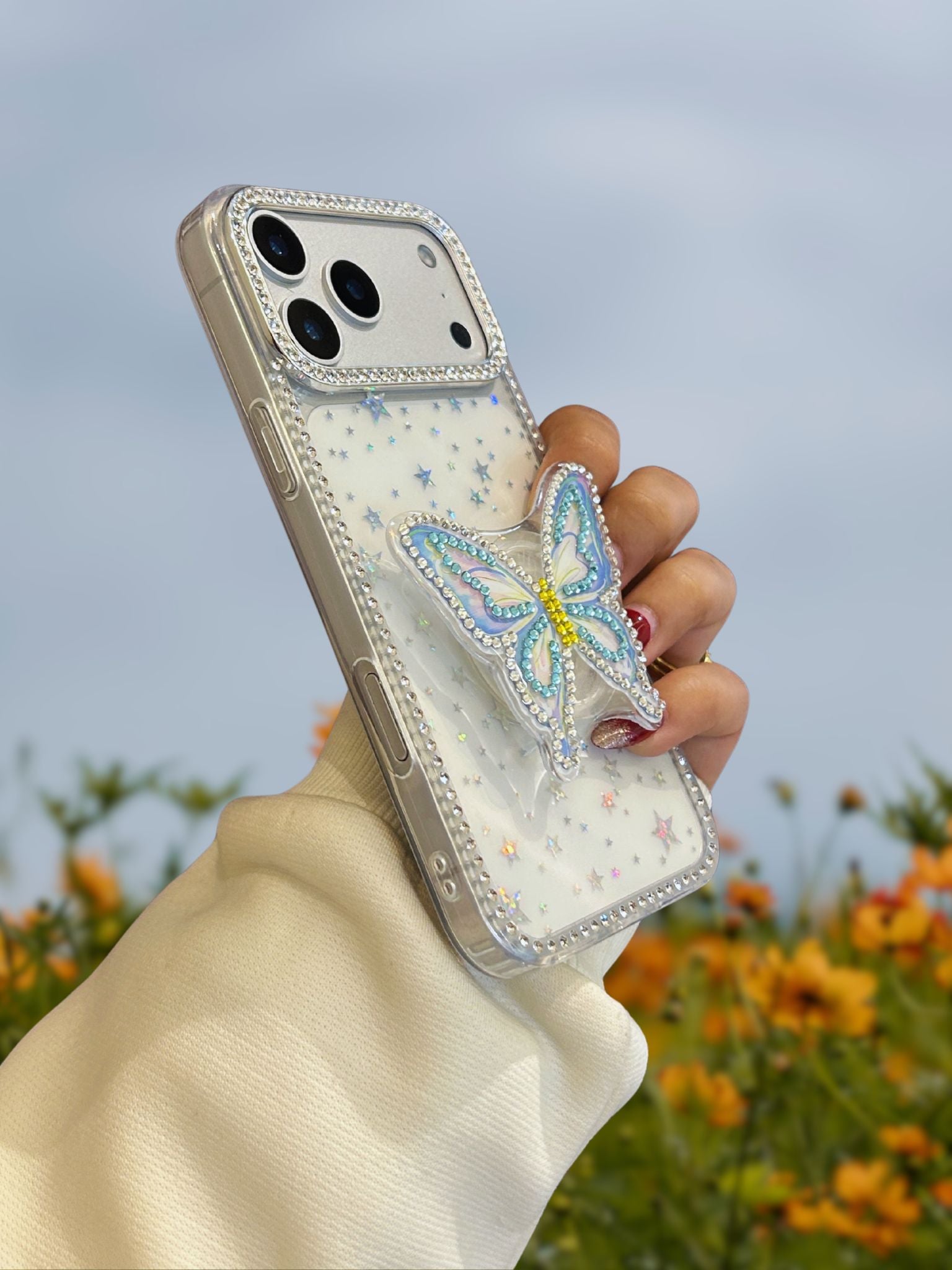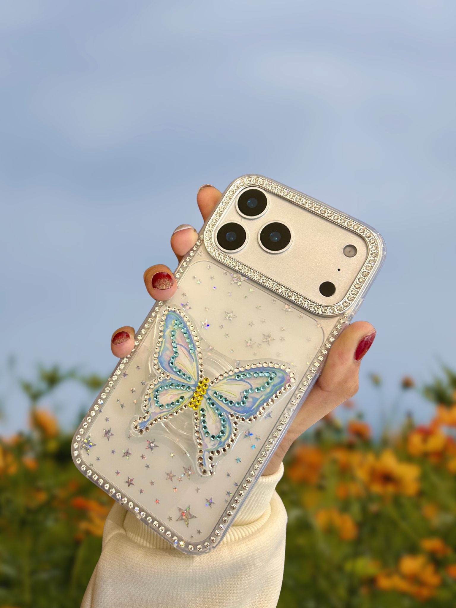 Butterfly Diamond Rhinestones Gripper Cover in a sleek new design for the iPhone 16 Pro, iPhone 16 Pro Max, iPhone 17 Pro and iPhone 17 Pro Max.