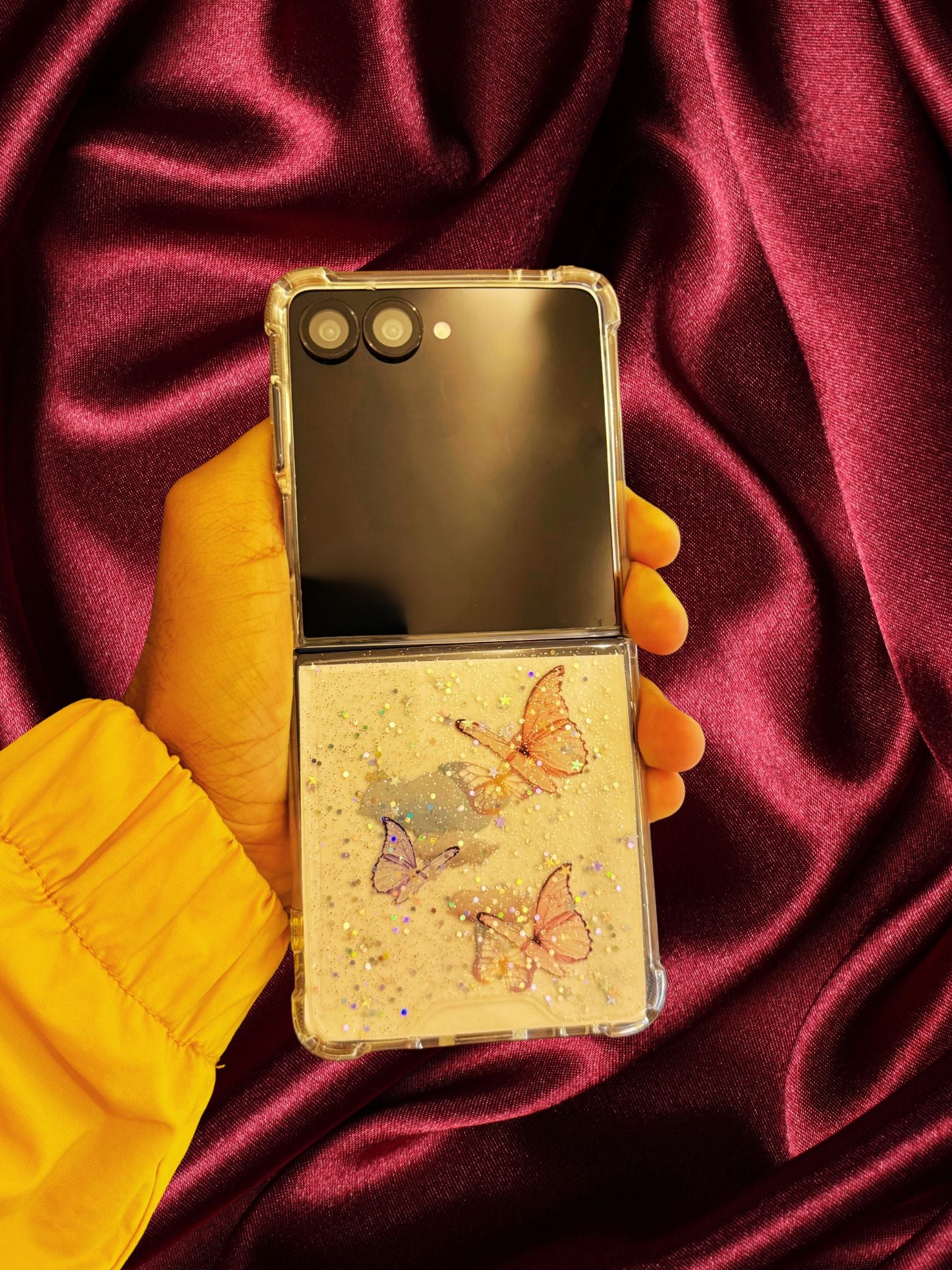 Butterfly Glitter Transparent Cover in a sleek new design for the Samsung Galaxy Z Flip 7.