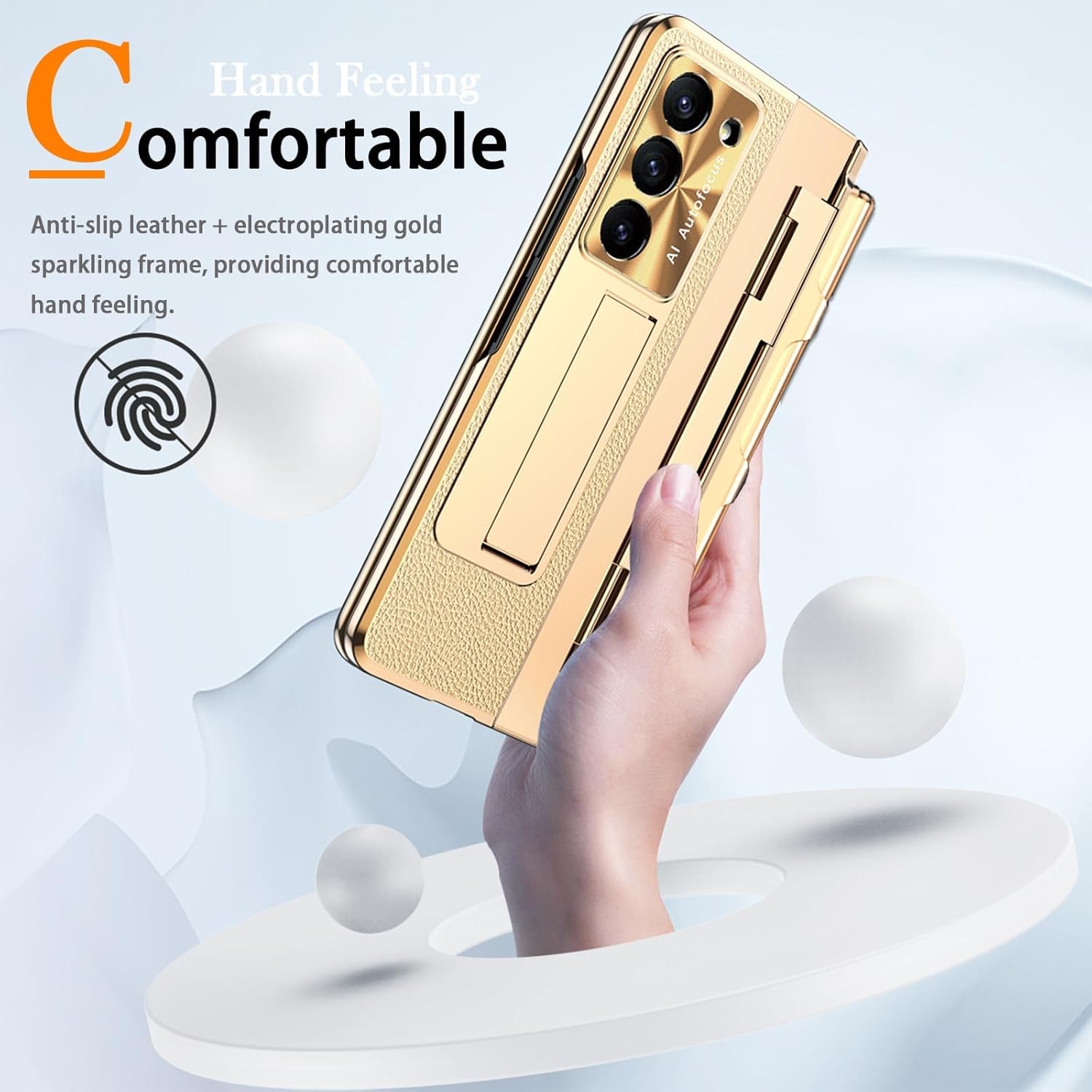 Champagne Gold Electroplated Cover comes with a Front Tempered Glass in a sleek new design for the Samsung Galaxy Z Fold 6 and Samsung Galaxy Z Fold 7.