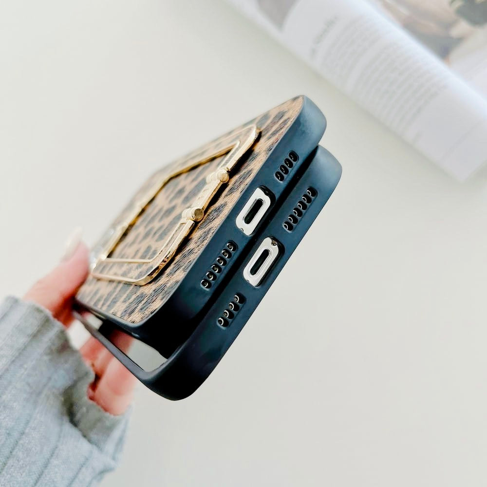 Classy Leopard Style Gold Buckle Holder Case in a sleek new design for the iPhone 13, iPhone 13 Pro, iPhone 13 Pro Max.