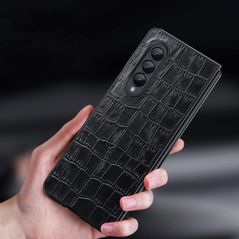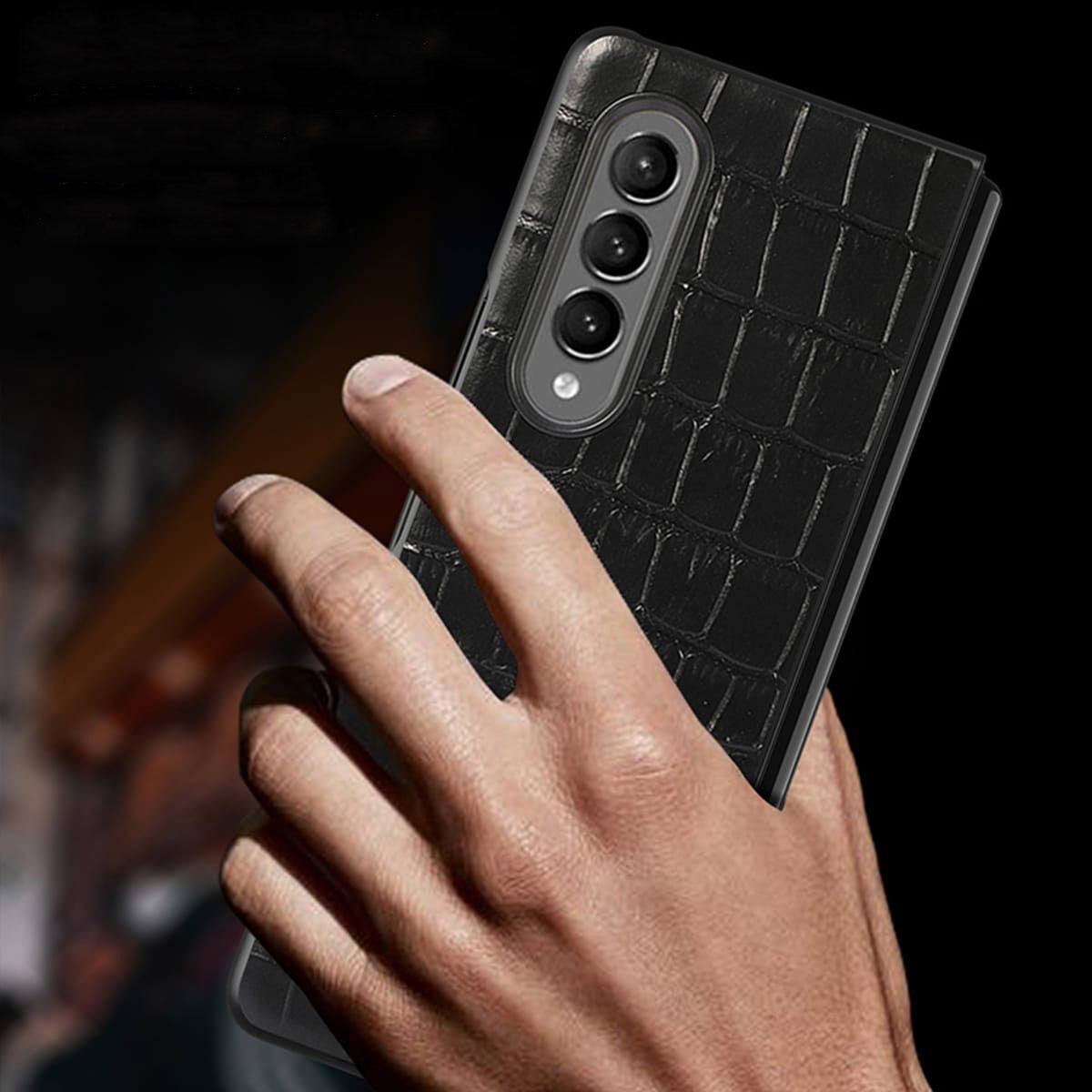 Jet Black Croco Pattern Leather Case in a sleek new design for the Samsung Galaxy Z Fold 4.
