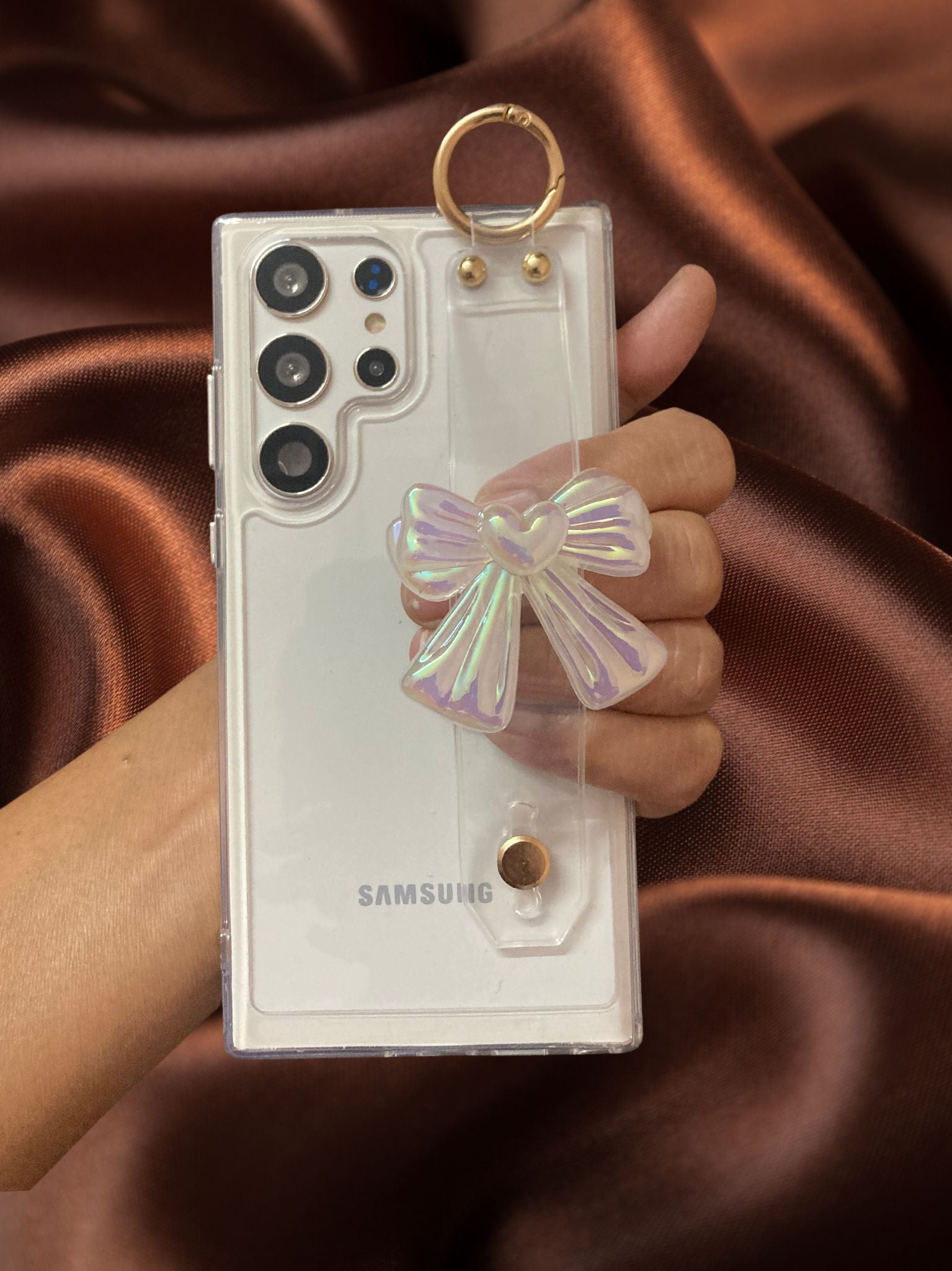 Cute Bowknot Hand Strap Case in a sleek new design for the Samsung Galaxy S23, Samsung Galaxy S23 Plus and Samsung Galaxy S23 Ultra, Samsung Galaxy S24, Samsung Galaxy S24 Plus and Samsung Galaxy S24 Ultra.