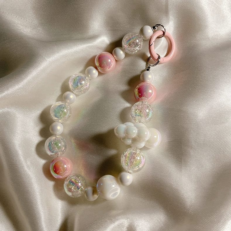 Cute Cloud Phone Charm made with pearls Can be Attached to any Phone Cover of any Brand.