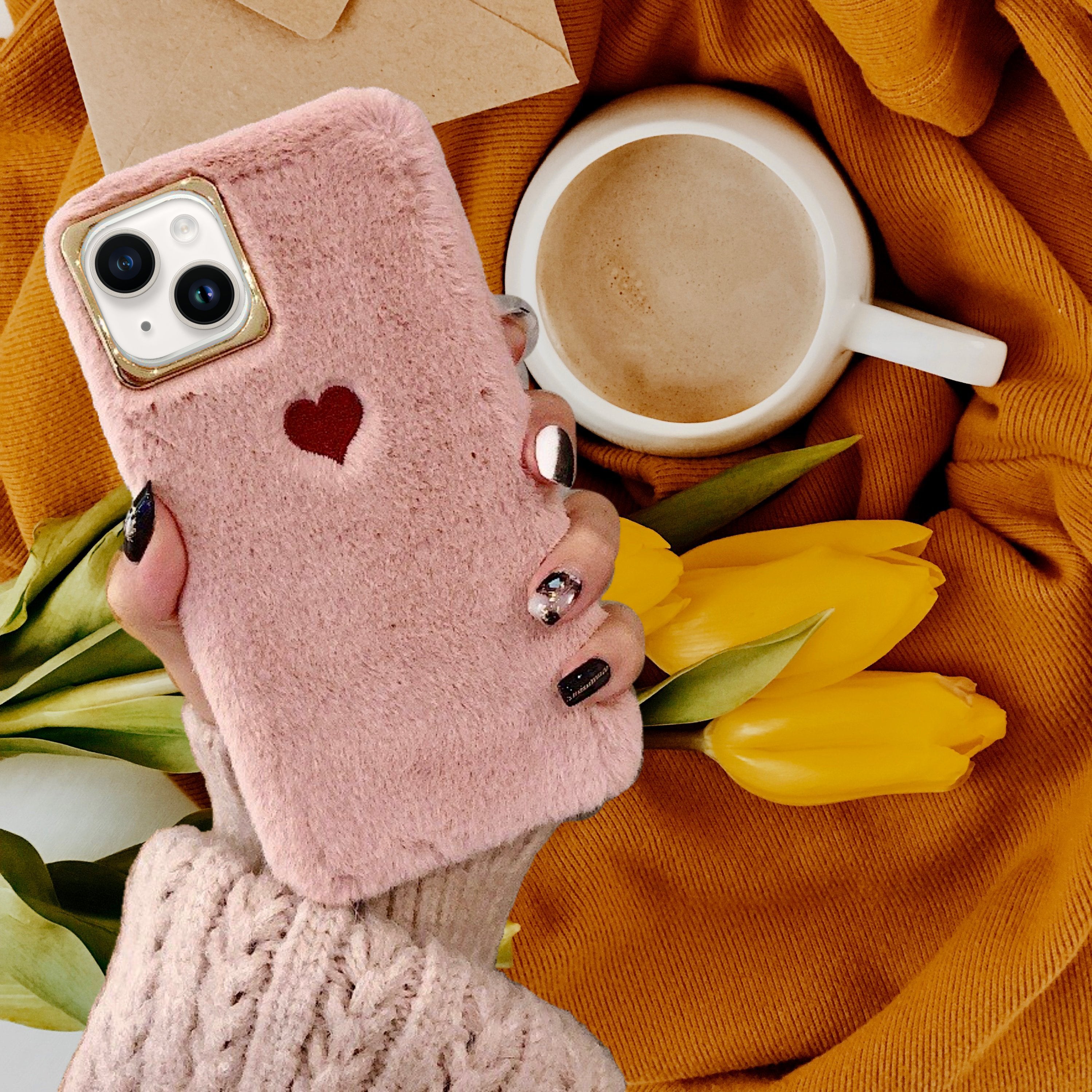 Cute Heart Plush Fur Cover in a sleek new design for the iPhone 13, iPhone 13 Pro, and iPhone 13 Pro Max.