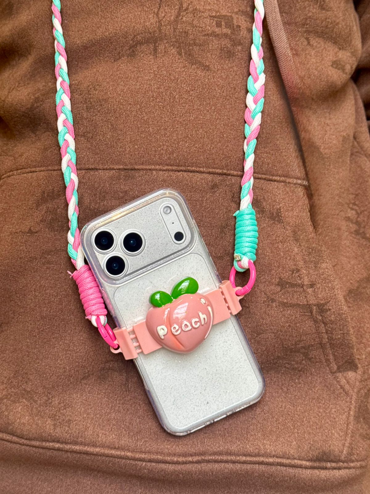 Cute Peach Phone Holder Lanyard Sling with adjustable phone holder and long body lanyard that can be Attached to any Phone of any Brand.