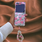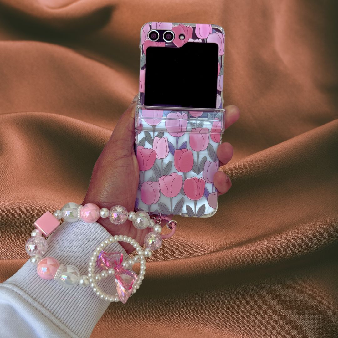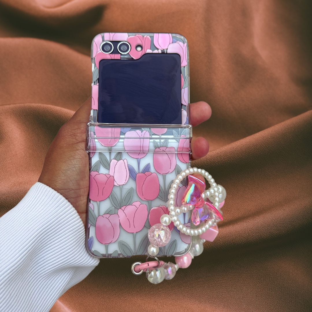 Cute Tulips Luxury Cover comes with a stylish Lanyard in a sleek new design for the Samsung Galaxy Z Flip 5 and Samsung Galaxy Z Flip 6.