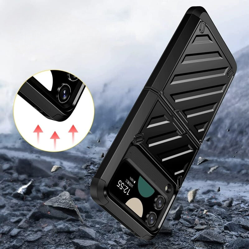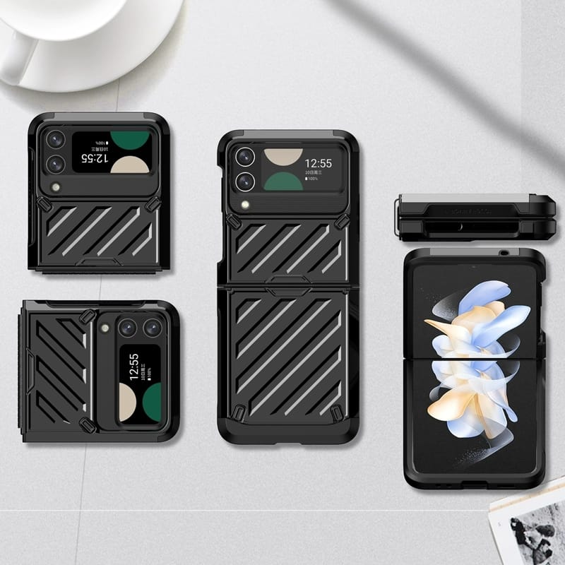 Midnight Black Dual Layer Shockproof Premium Armour Cover in a sleek new design for the Samsung Galaxy Z Flip 3 and Samsung Galaxy Z Flip 4.