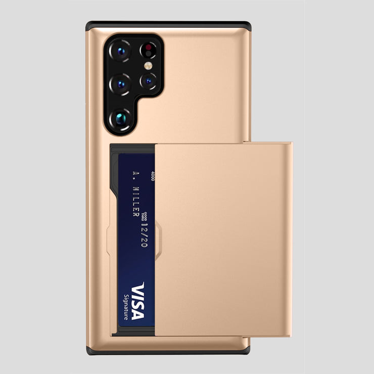 Upgrade your phone's look and protection with the Gold Dual Layer Card Holder Shockproof Case — designed to impress and built to last.