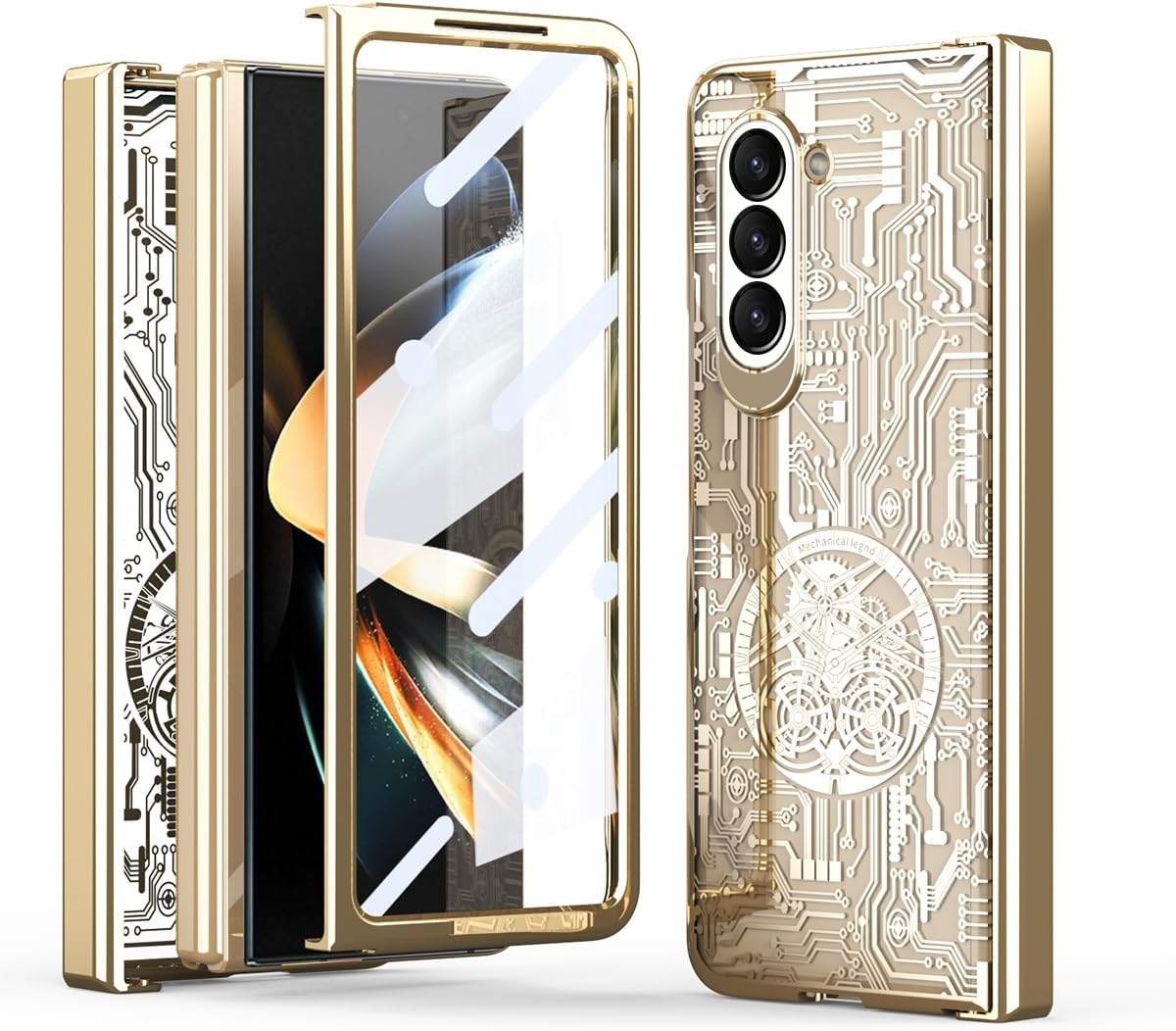 Gold Electroplated Premium Circuit Glass Cover in a sleek new design for the Samsung Galaxy Z Fold 3, Samsung Galaxy Z Fold 4, Samsung Galaxy Z Fold 5 and Samsung Galaxy Z Fold 6.