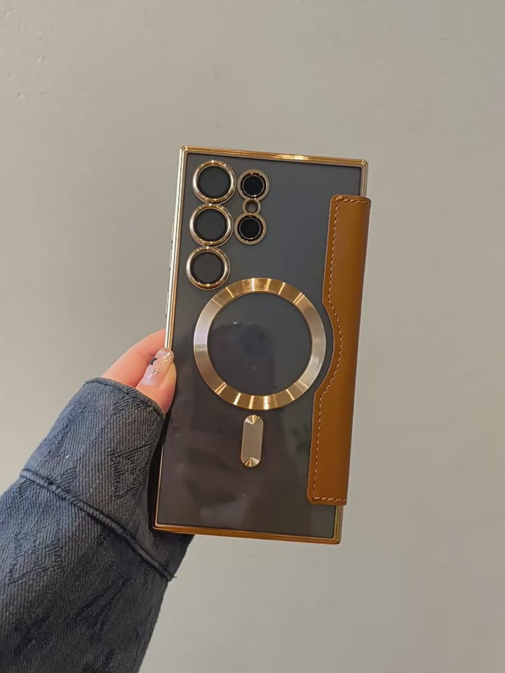 Gold Electroplated Premium Leather Diamond Pattern Luxury Flip Case in a sleek new design for Samsung Galaxy S25, Samsung Galaxy S25 Plus and Samsung Galaxy S25 Ultra.