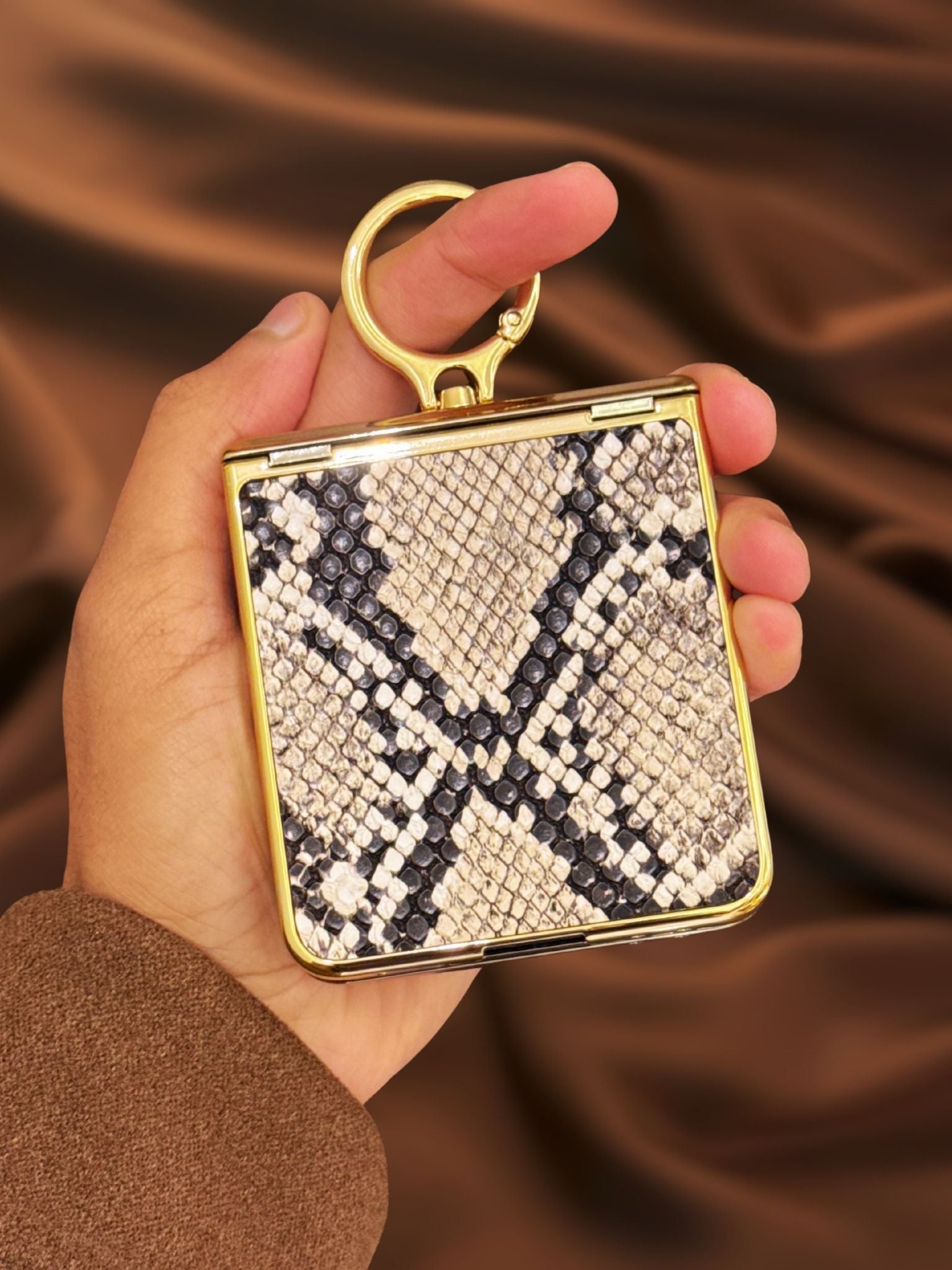 Gold Electroplated Python Leather Luxury Cover(with Front Glass)