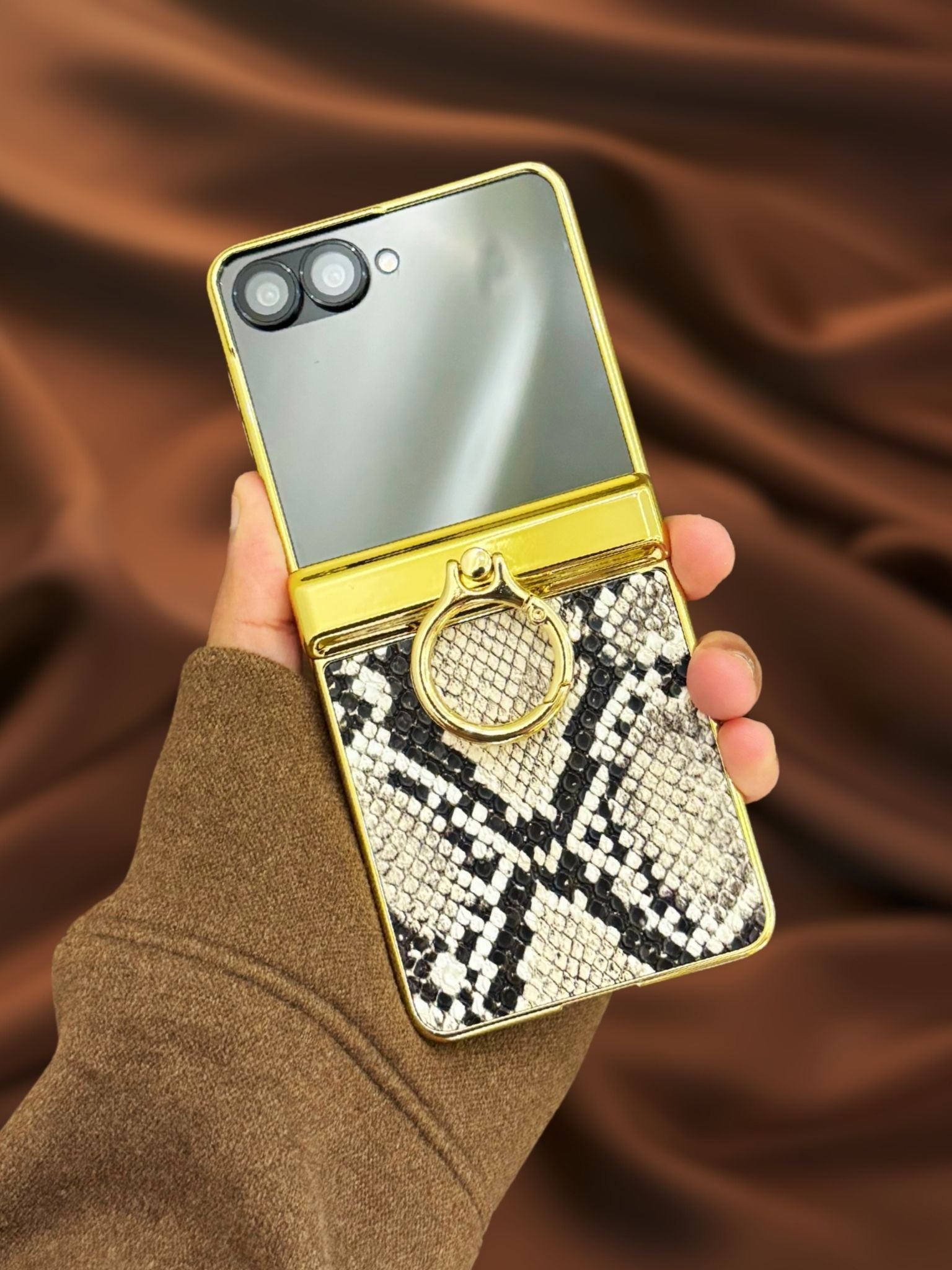 Gold Electroplated Python Leather Luxury Case in a sleek new design for the Samsung Galaxy Z Flip 7.