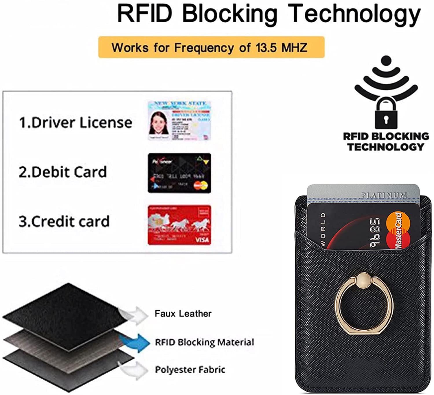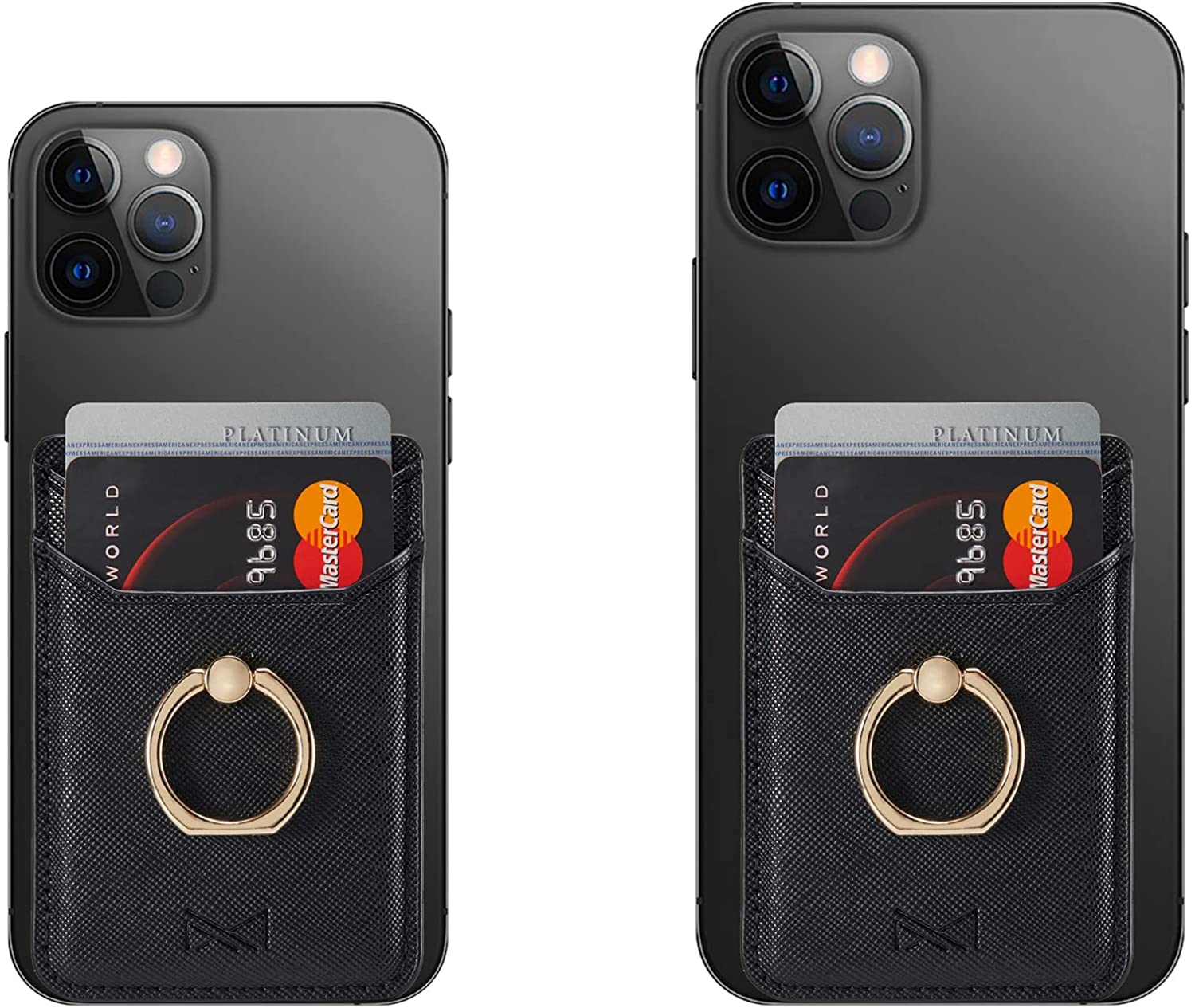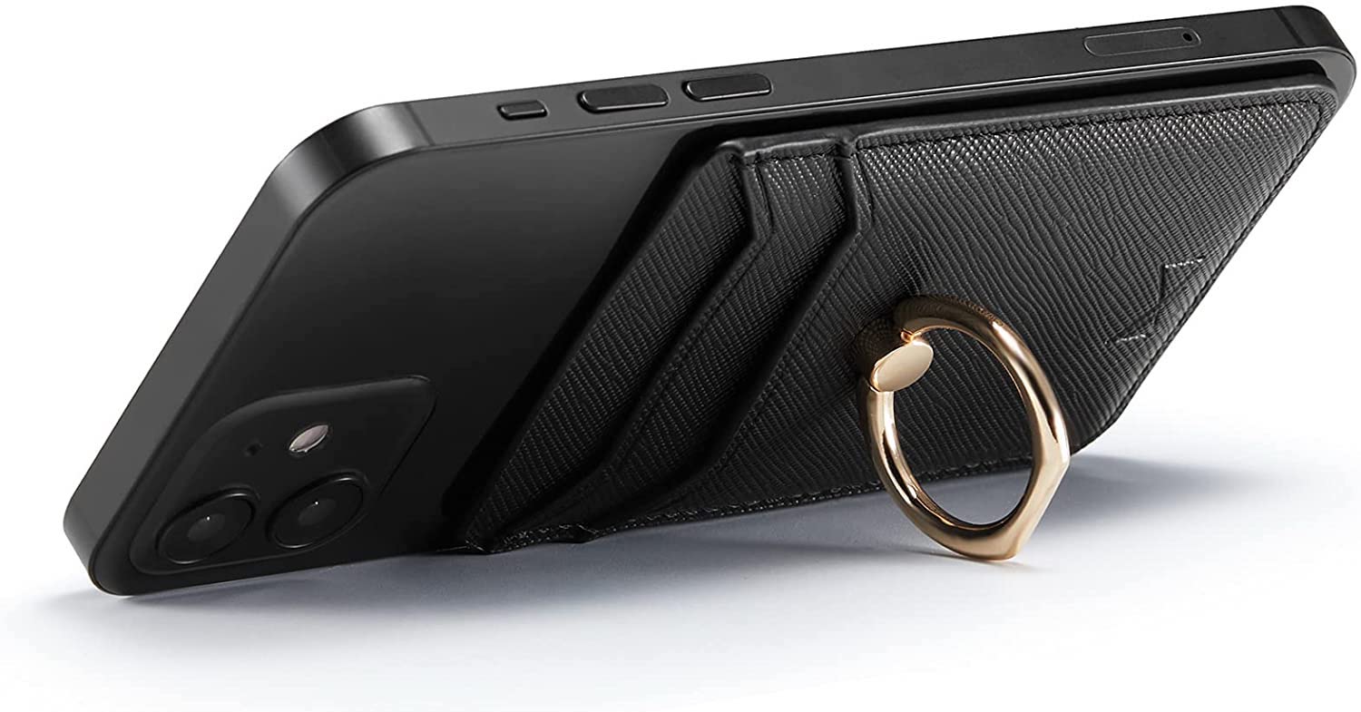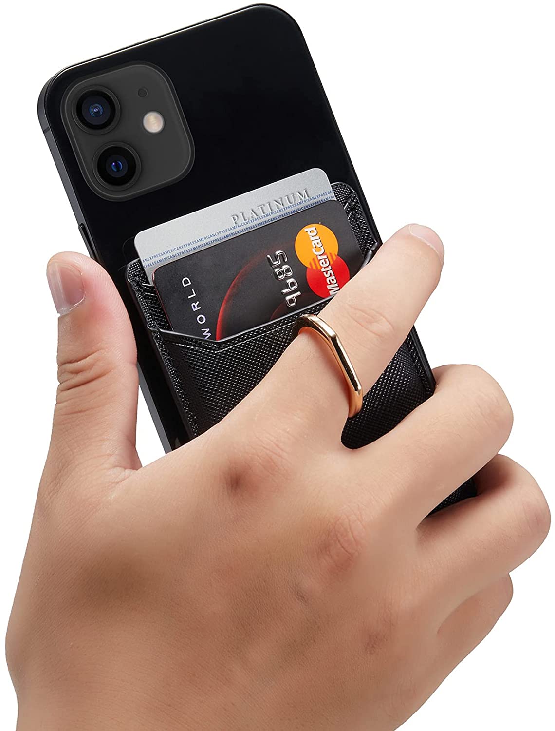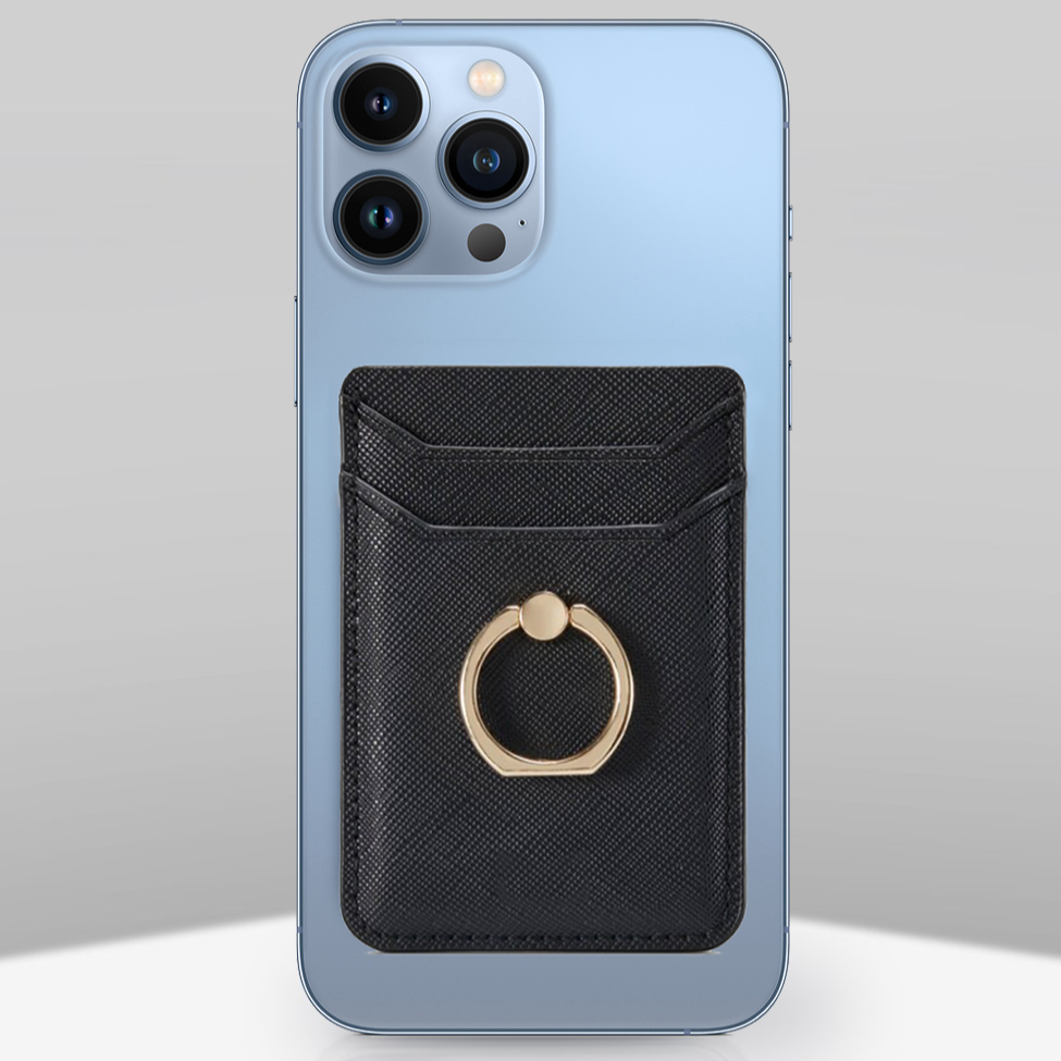 Gold Ring Holder Black Leather Phone Wallet can be attached to any Phone of any Brand.