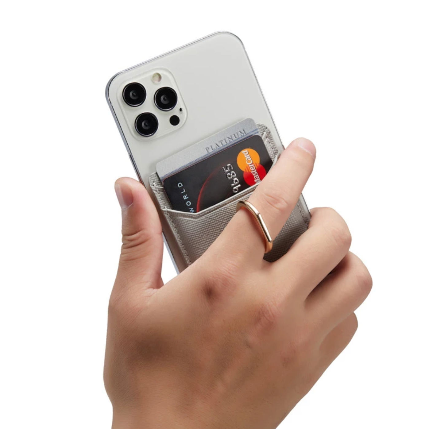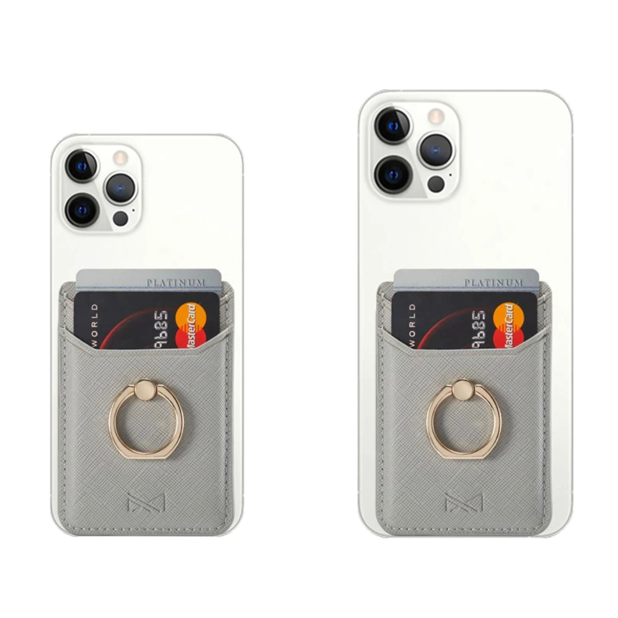Gold Ring Holder Grey Leather Phone Wallet