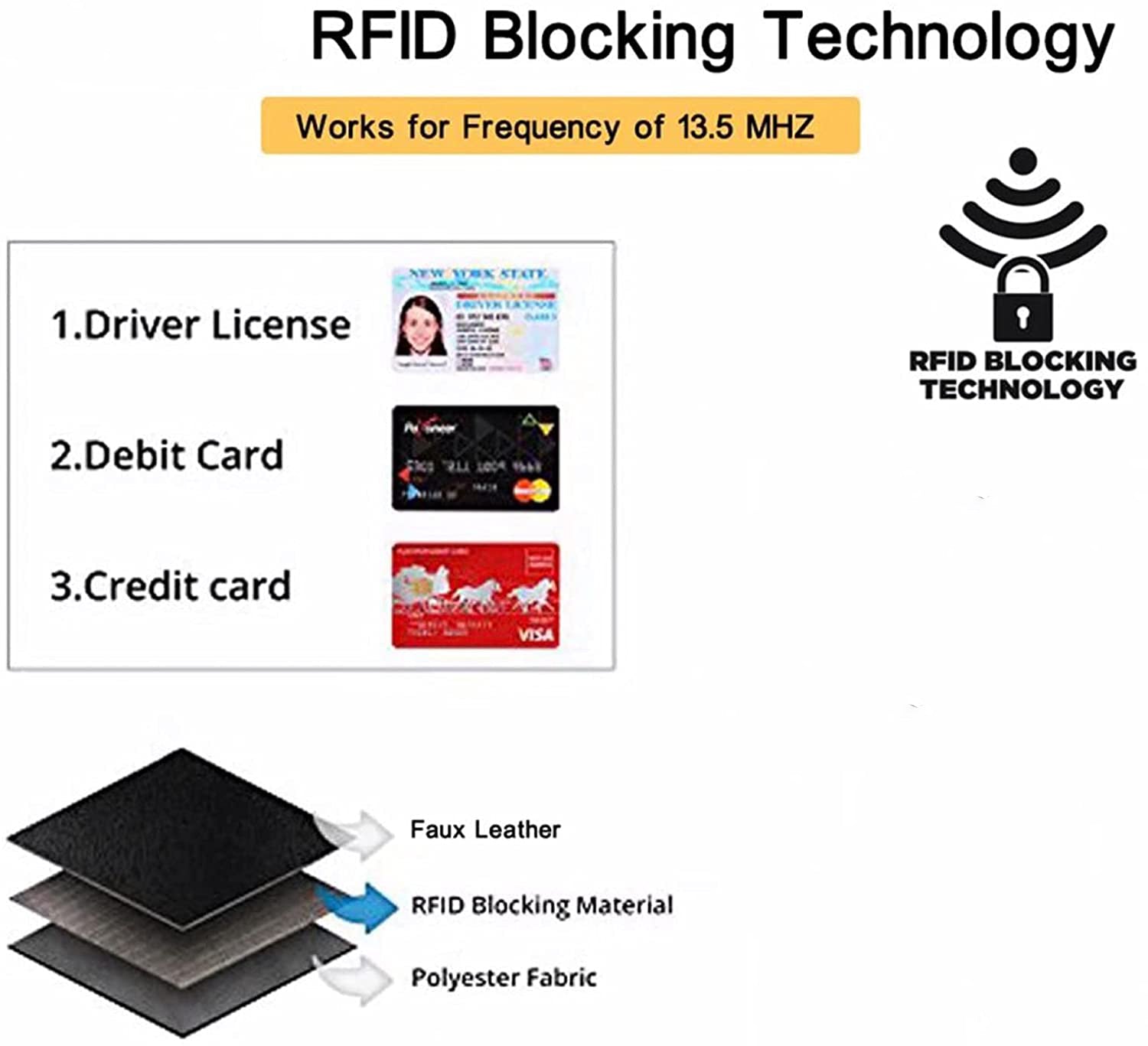 - RFID Blocking Layer Inside to protect your data