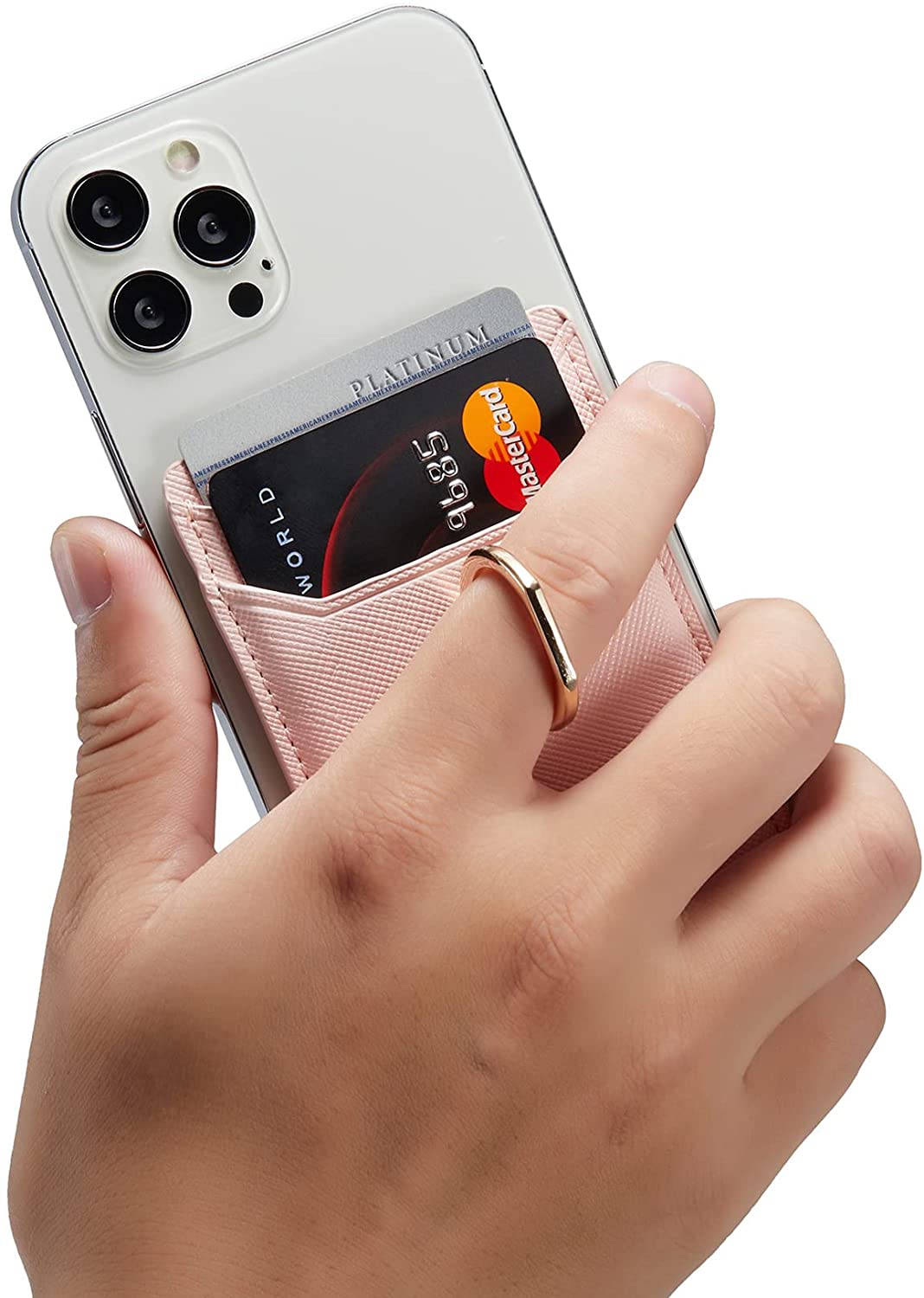 Gold Ring Holder PinkĀ Leather Phone WalletĀ can beĀ attached to any Phone.