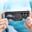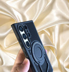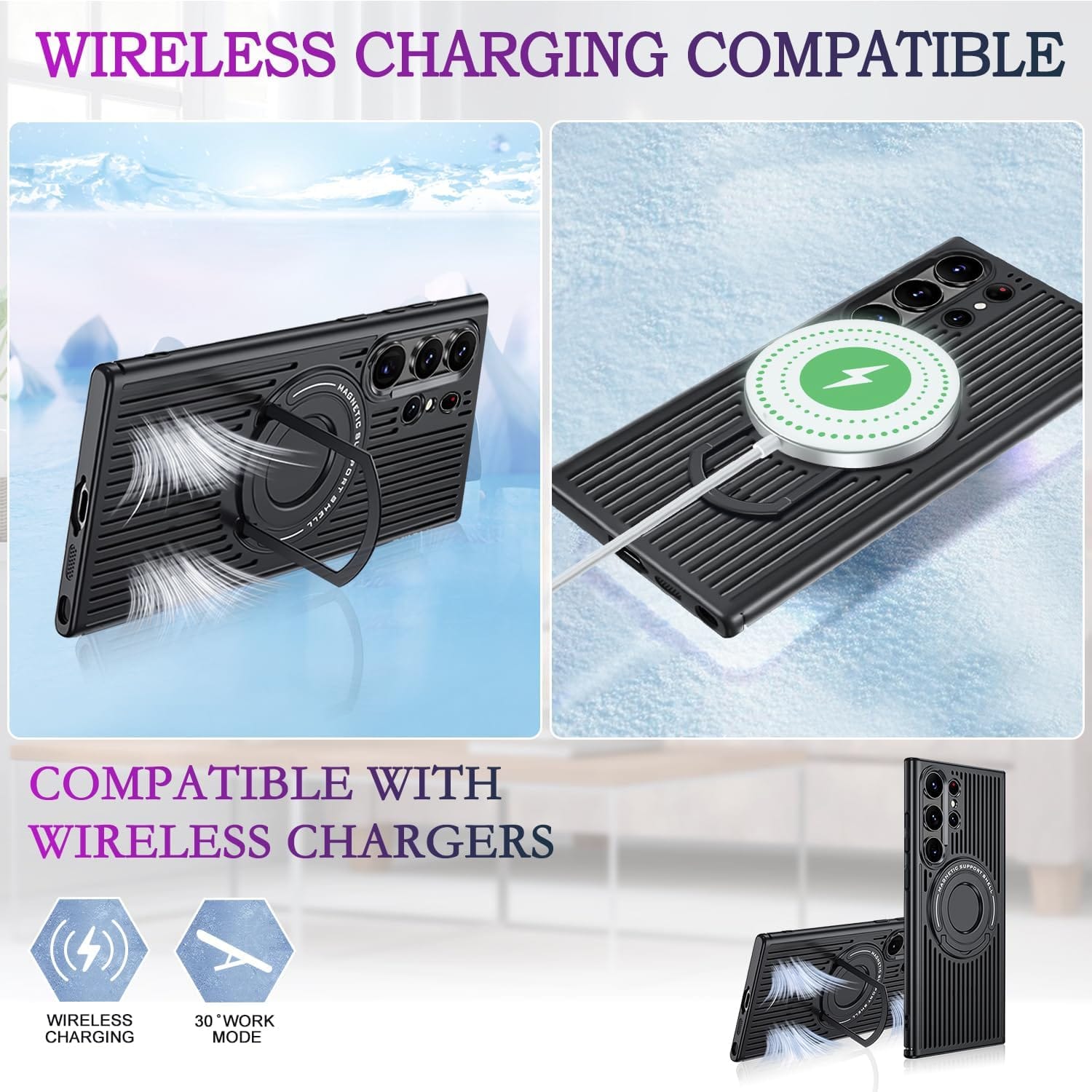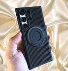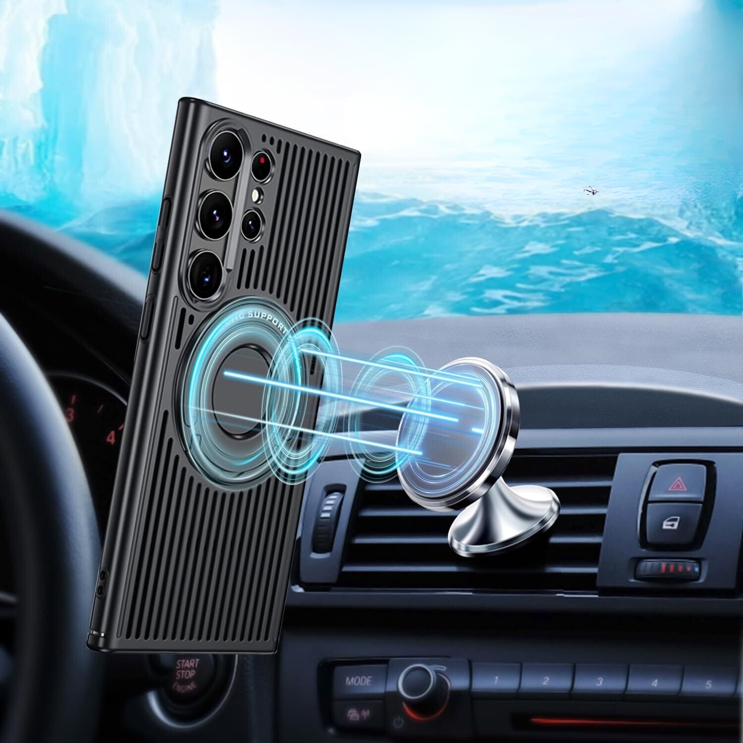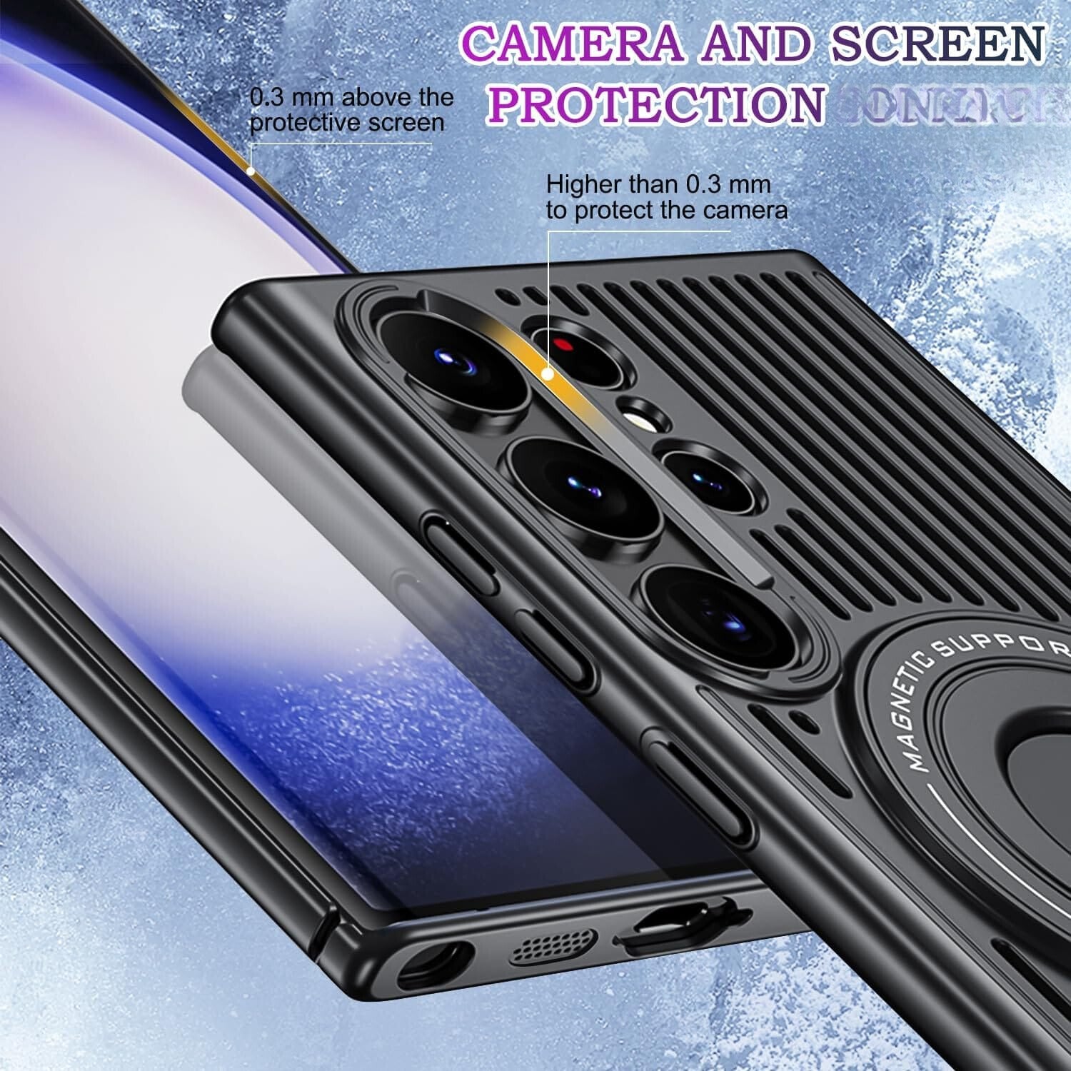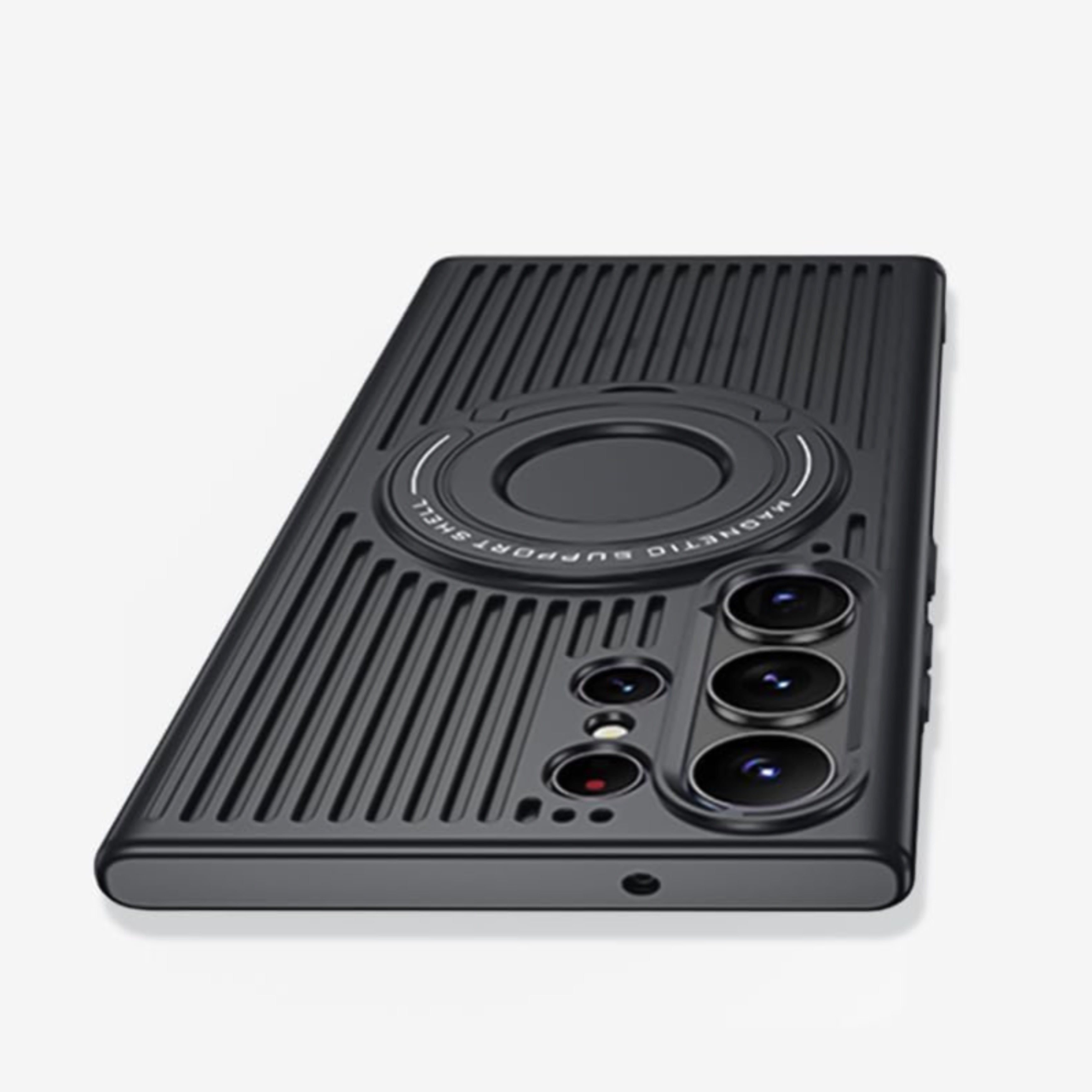 Jet black Heat Dissipation Magnetic Stand Cover in a sleek new design for the Samsung Galaxy S23, Samsung Galaxy S23 Plus and Samsung Galaxy S23 Ultra, Samsung Galaxy S24, Samsung Galaxy S24 Plus and Samsung Galaxy S24 Ultra