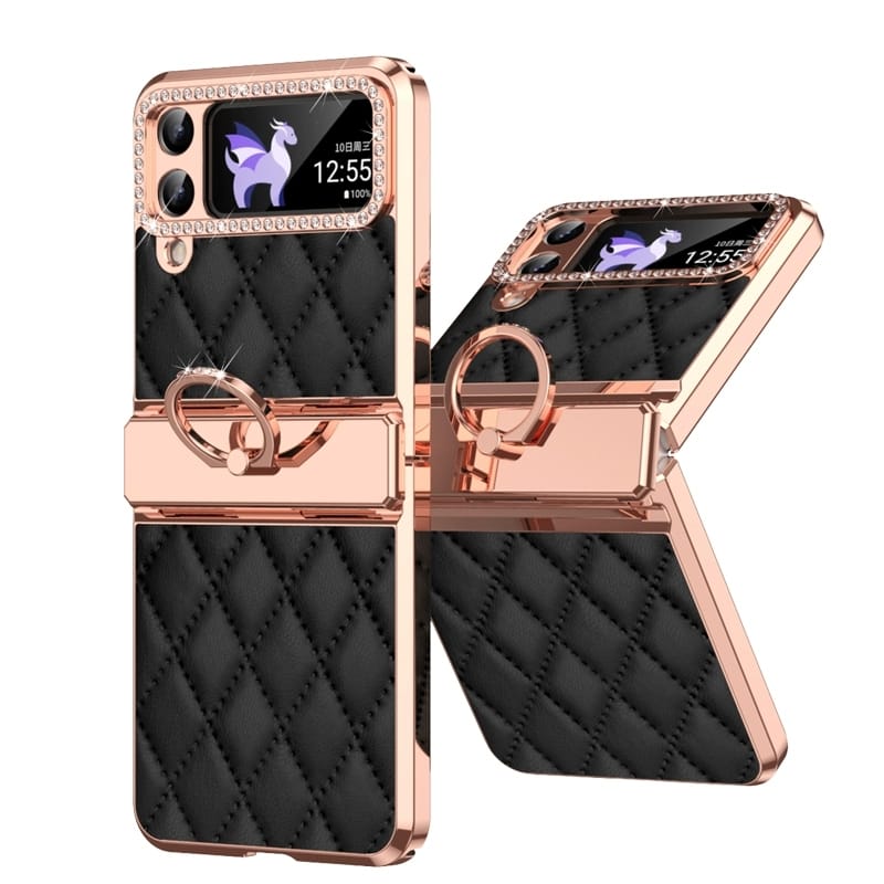 Luxury Diamond Rhinestones Premium Leather Cover in a sleek new design for the Samsung Galaxy Z Flip 3 and Samsung Galaxy Z Flip 4.
