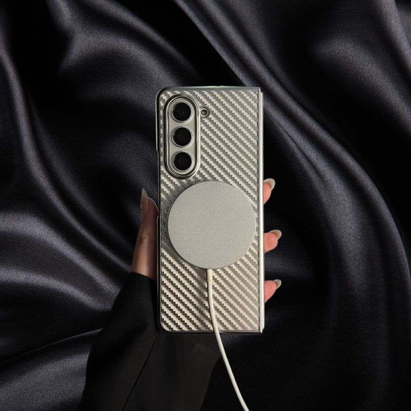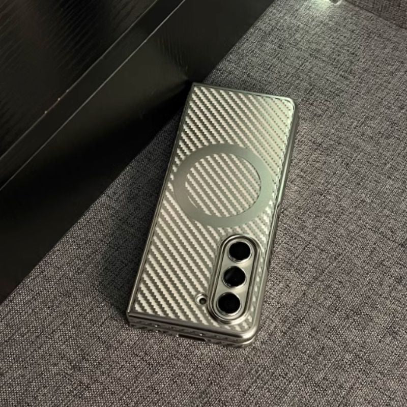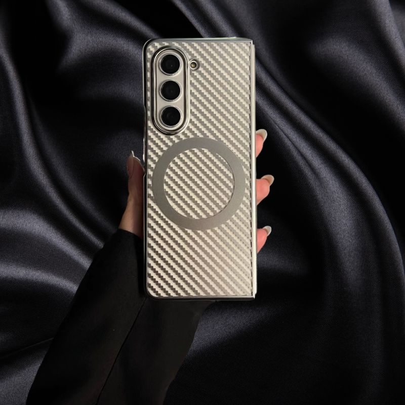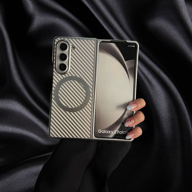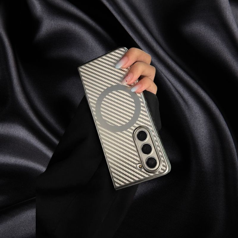 Luxury Silver Electroplated Matte Transparent Case in a sleek new design for the Samsung Galaxy Z Fold 6, Samsung Galaxy Z Fold 5, Samsung Galaxy Z Fold 4 and Samsung Galaxy Z Fold 3.