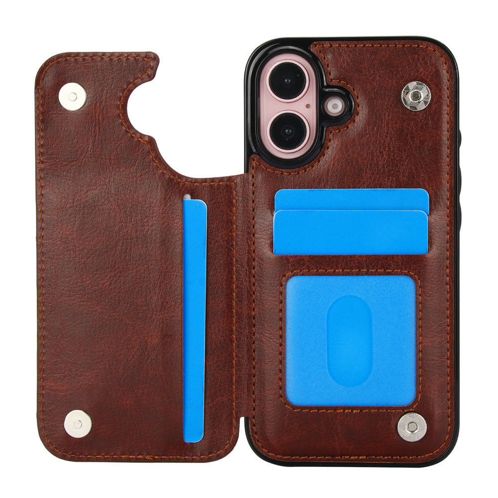 Luxury Wallet Style Premium Leather Case in a sleek new design for iPhone 16 and iPhone 16 Plus.