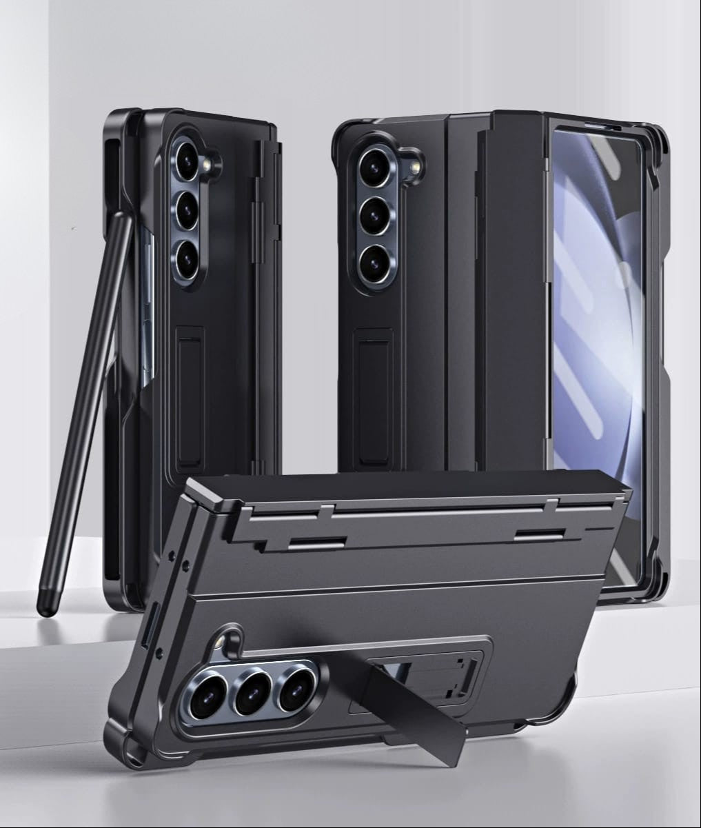 Midnight Black Premium Luxury Cover comes with a Stylus and Front Glass in a sleek new design for the Samsung Galaxy Z Fold 7, Samsung Galaxy Z Fold 6, Samsung Galaxy Z Fold 5, Samsung Galaxy Z Fold 4 and Samsung Galaxy Z Fold 3.