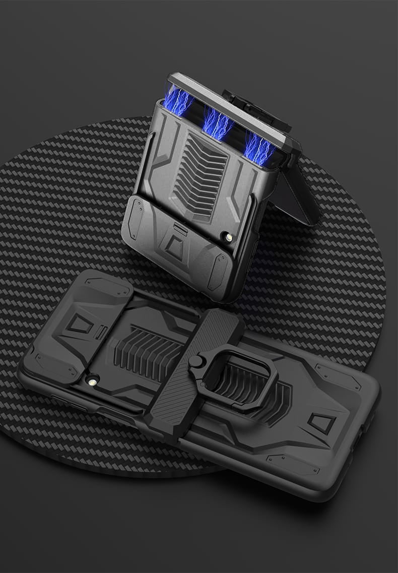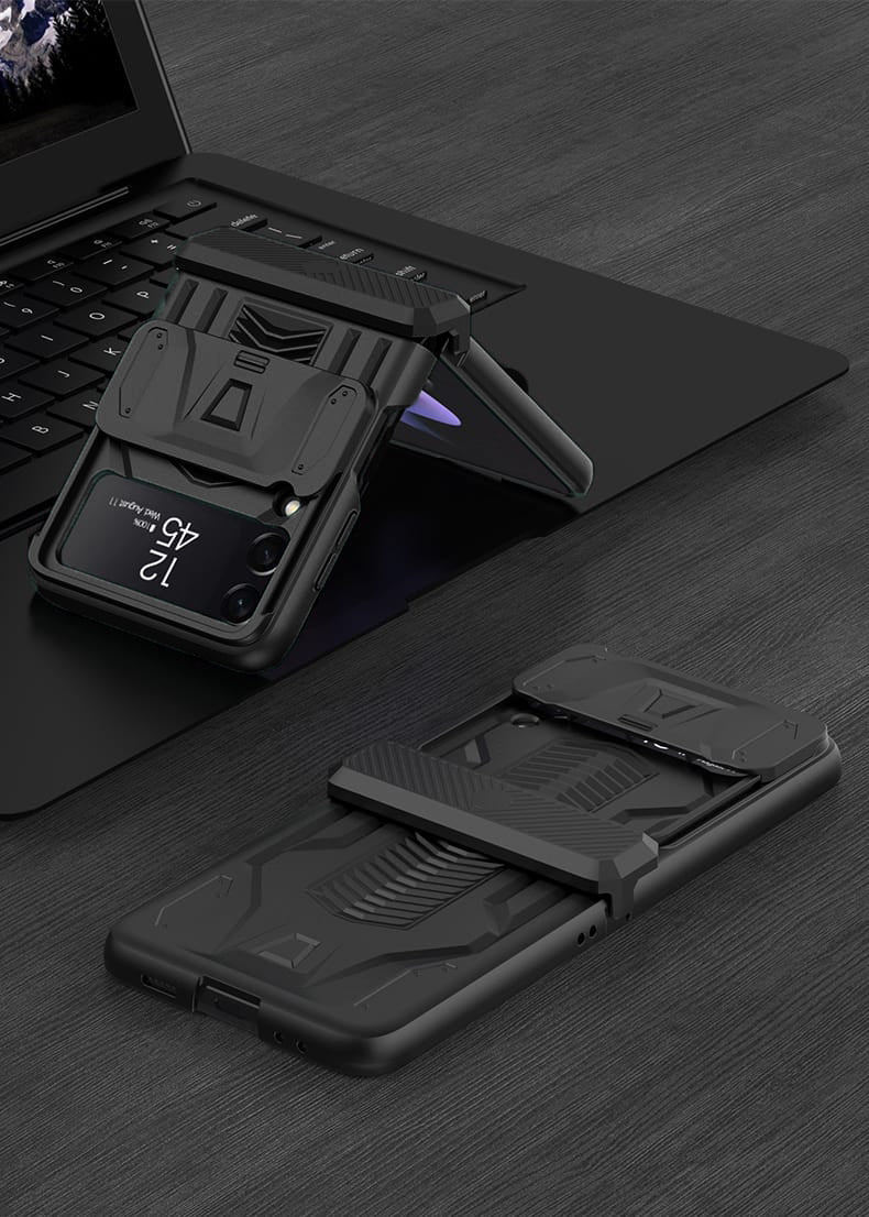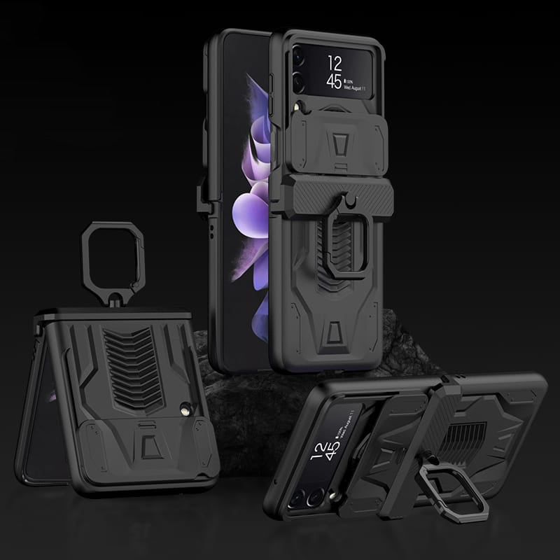 Midnight Black Ultra Premium Shockproof Armour Cover in a sleek new design for the Samsung Galaxy Z Flip 3 and Z Flip 4.