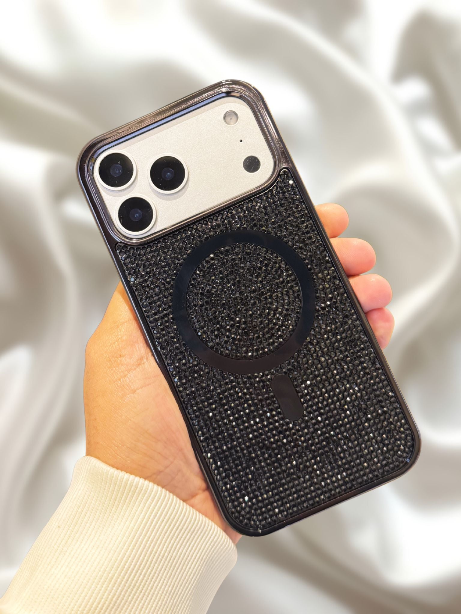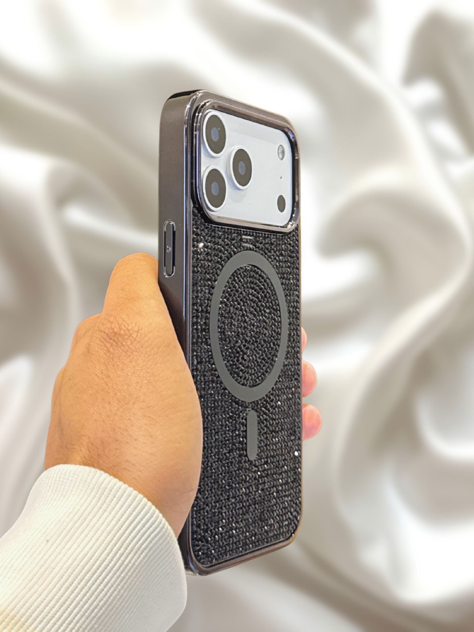 Onyx Black Diamond Rhinestones Luxury Cover comes in a sleek new design for the iPhone 17 Pro and iPhone 17 Pro Max.