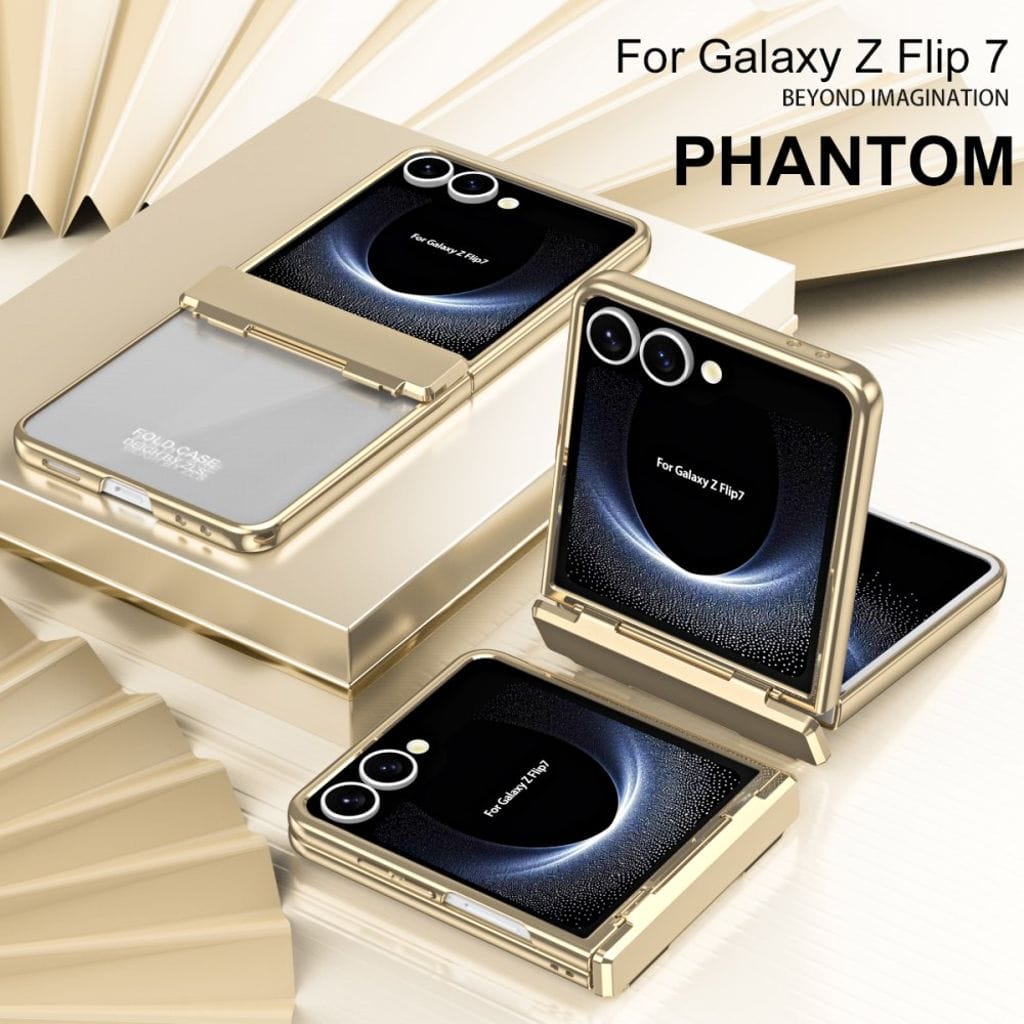 Premium Gold Electroplated Slim Glass Cover in a sleek new design for the Samsung Galaxy Z Flip 7.