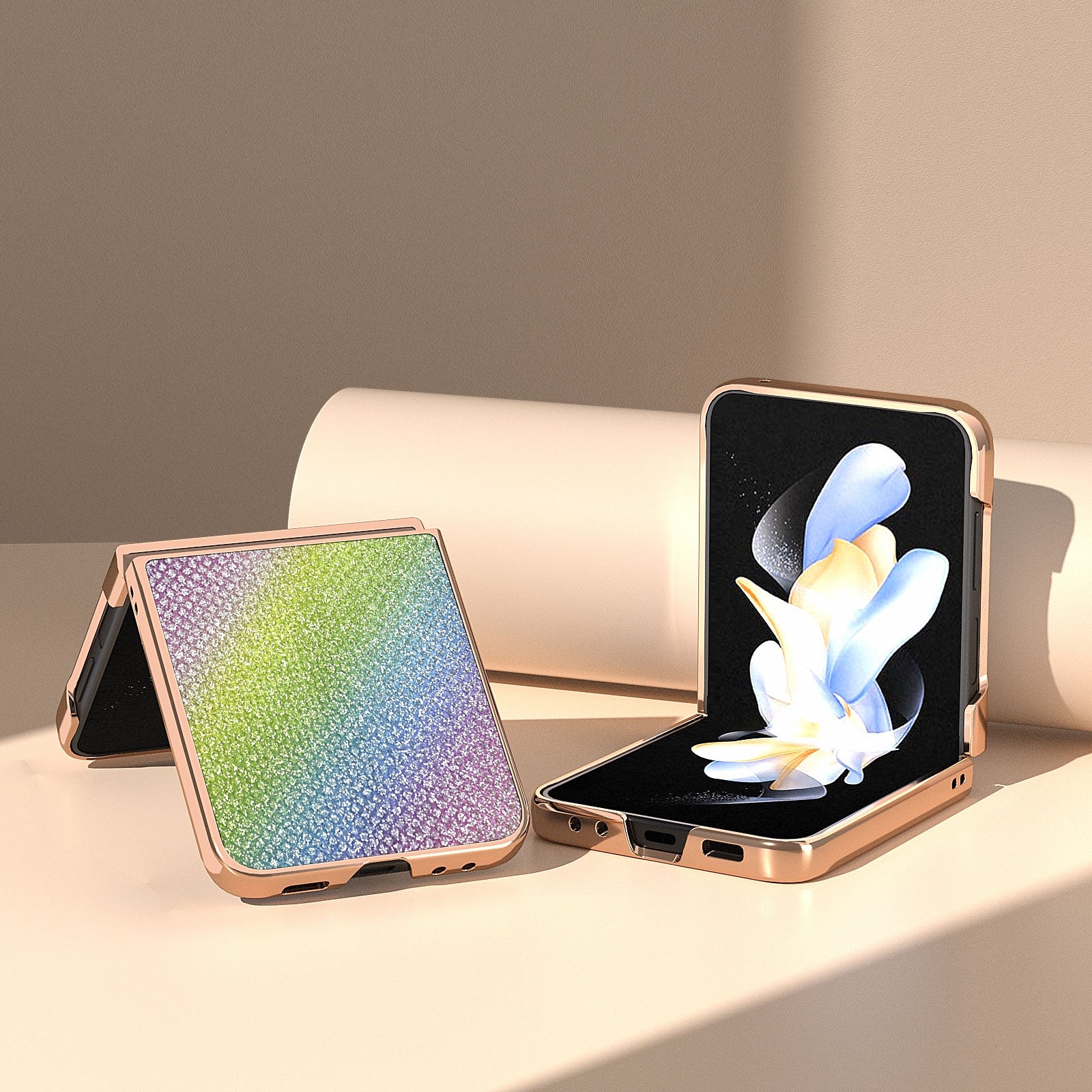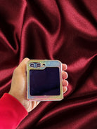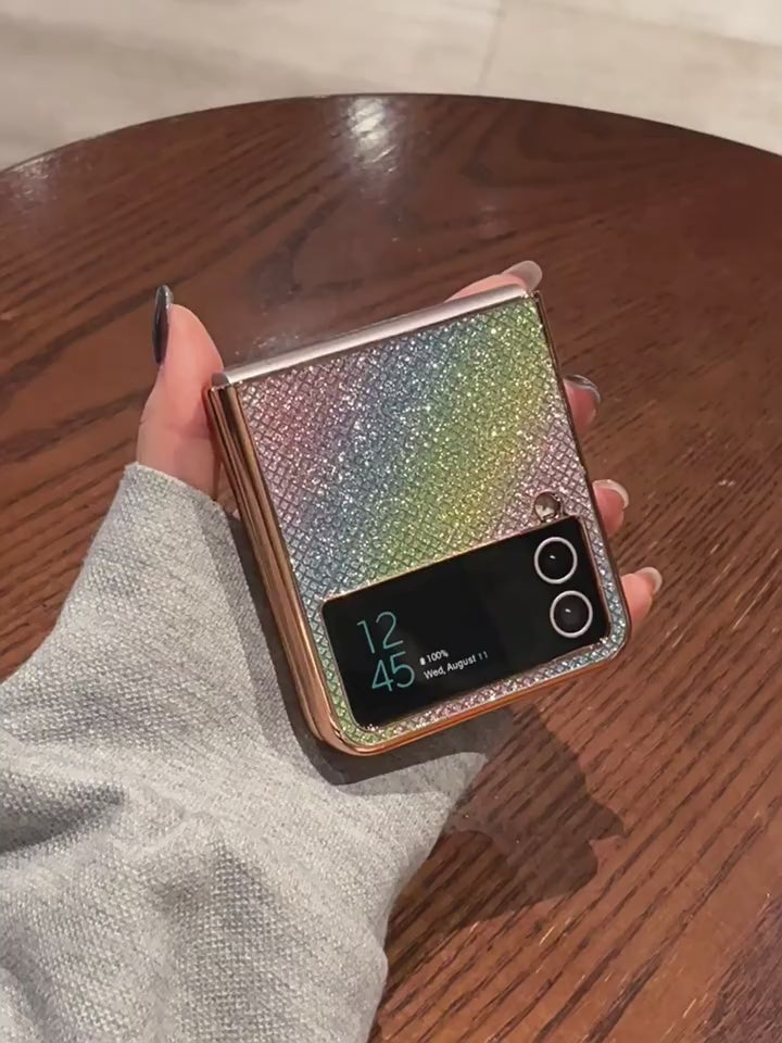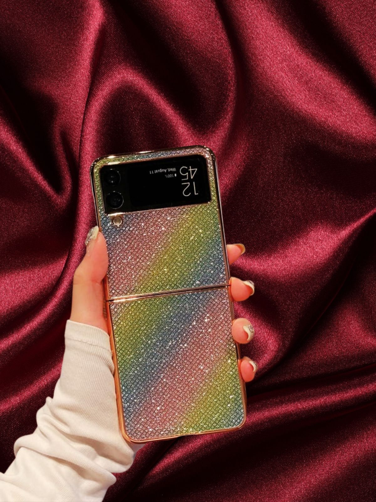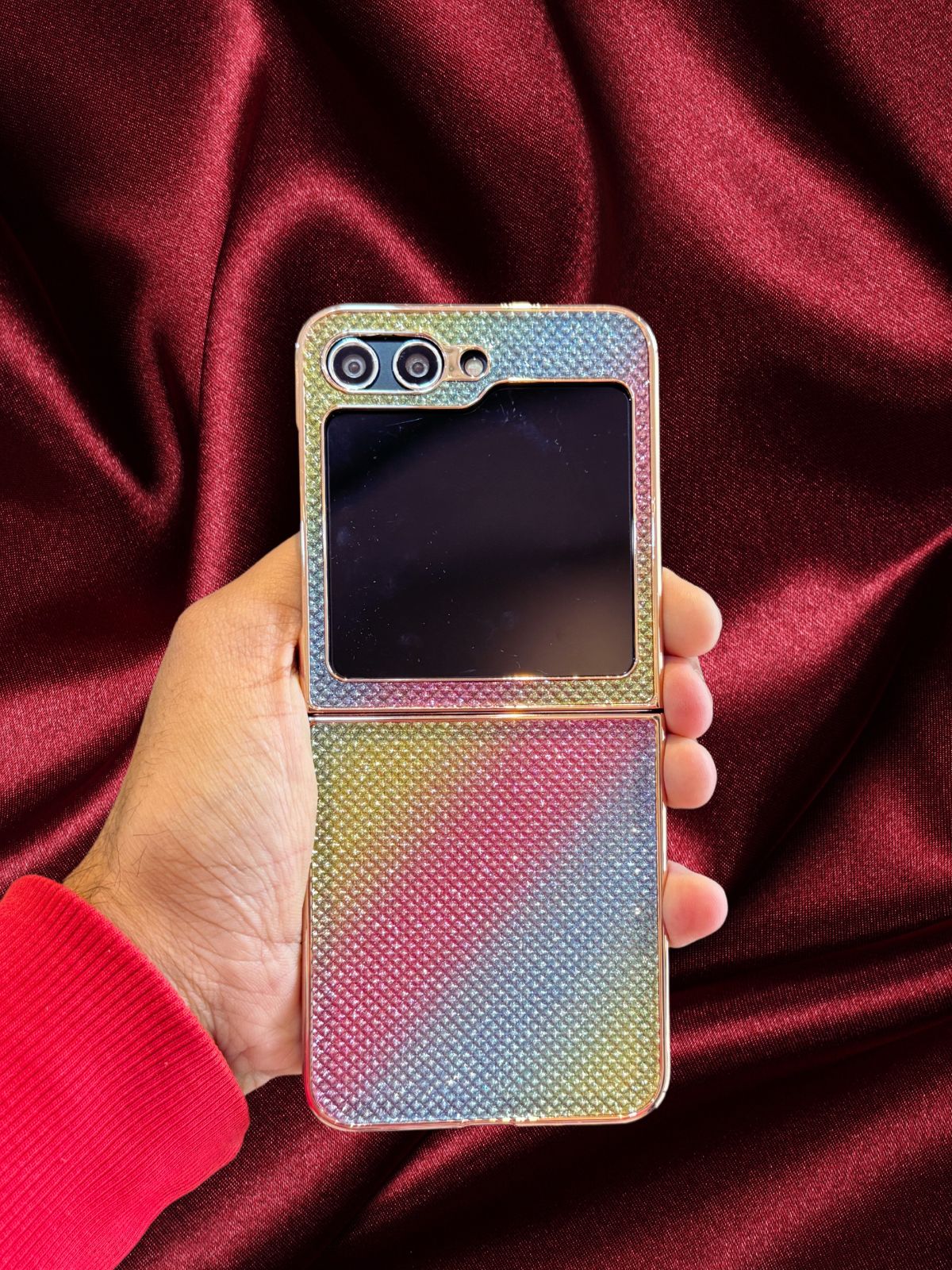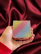 Rainbow Glitter 3D Diamond Pattern Luxury Cover in a sleek square design for the Samsung Galaxy Z Flip 3 and Samsung Galaxy Z Flip 4.