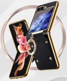 Ring Holder Gold Electroplated Premium Leather Case in a sleek new design for the Samsung Galaxy Z Flip 5 and Samsung Galaxy Z Flip 6.