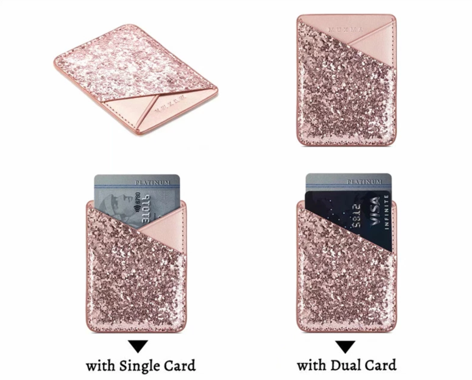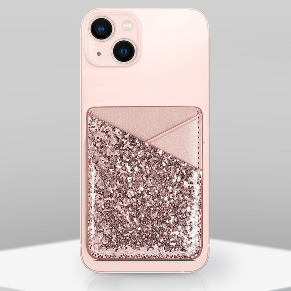 Rose GoldĀ Glitter Phone Wallet can beĀ attached to any Phone of any brand.