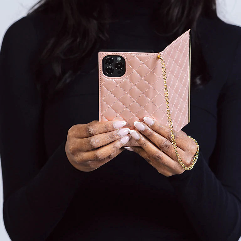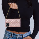 Rose Gold Luxury Leather Flip Case (with Chain Sling) in a sleek new design for the iPhone 13, iPhone 13 Pro, iPhone 13 Pro Max.