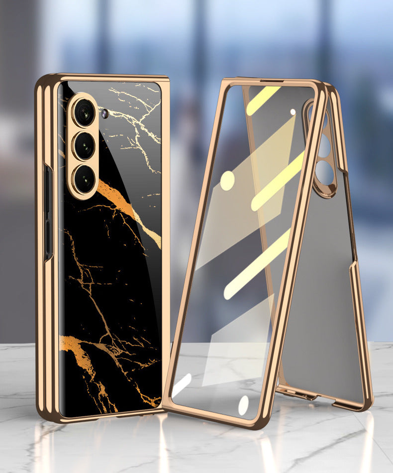Royal Gold Plated Marble Pattern Luxury Cover in a sleek new design for the Samsung Galaxy Z Fold 4, Samsung Galaxy Z Fold 5, Samsung Galaxy Z Fold 6 and Samsung Galaxy Z Fold 7.