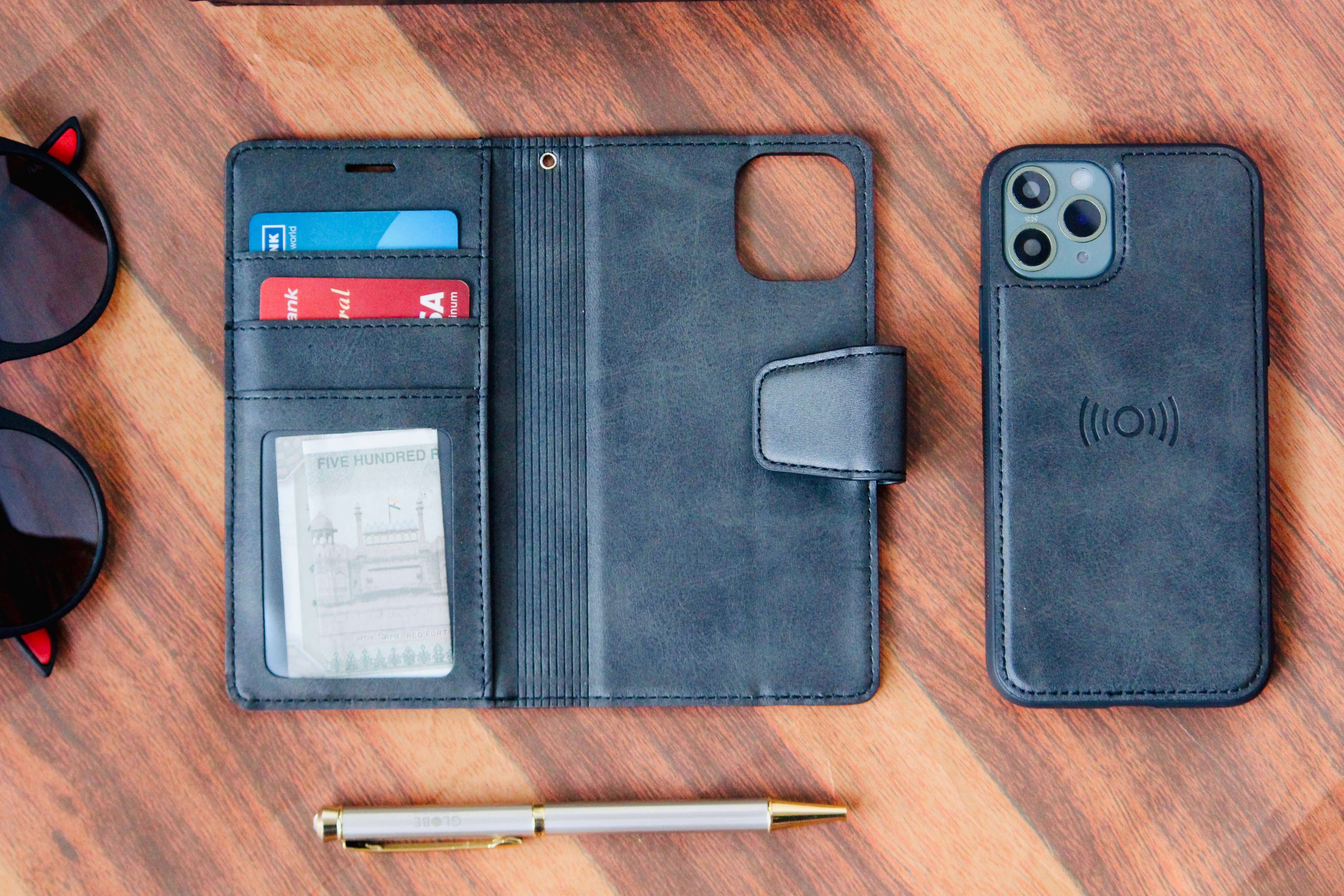 Two-In-One Wallet Style Premium Leather Luxury Flip Case in Black, in a sleek new design for iPhone 11, iPhone 11 Pro, iPhone 11 Pro Max.