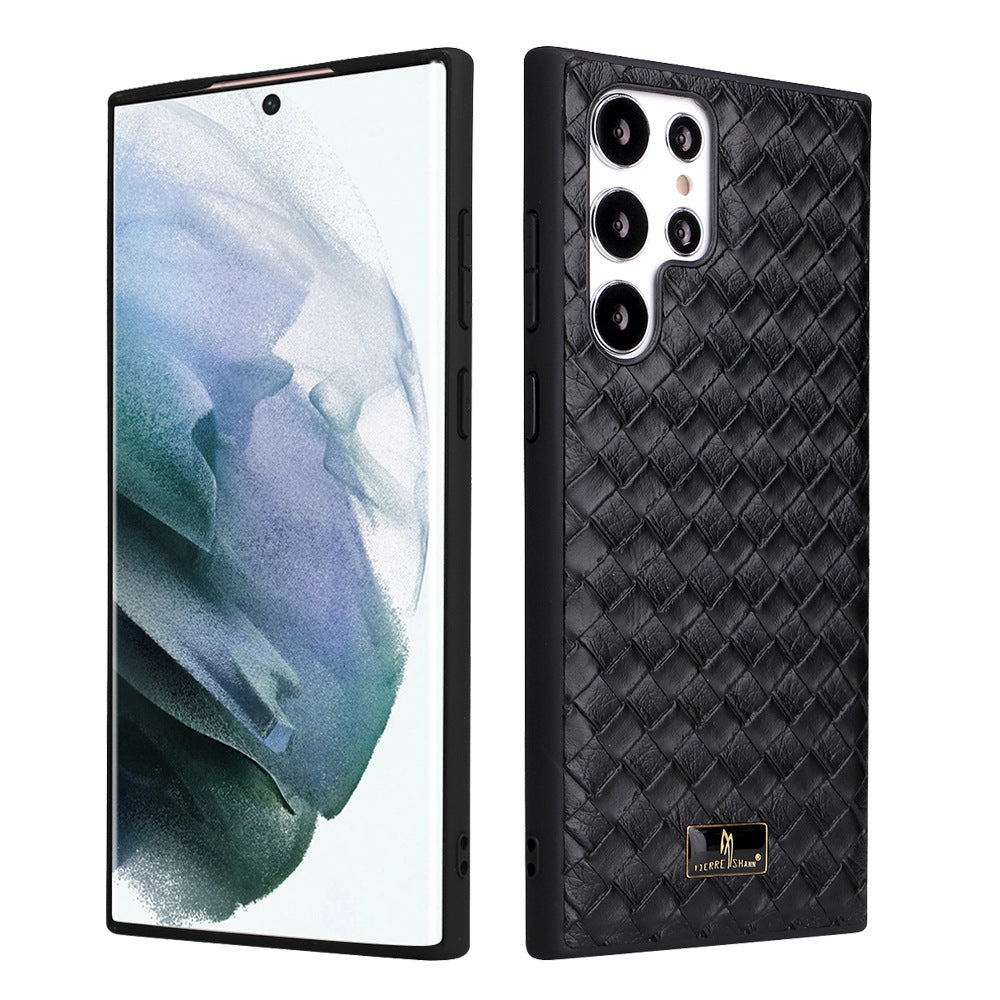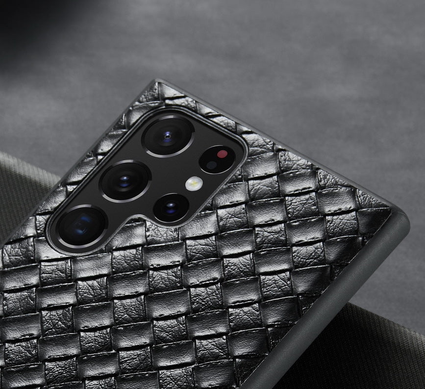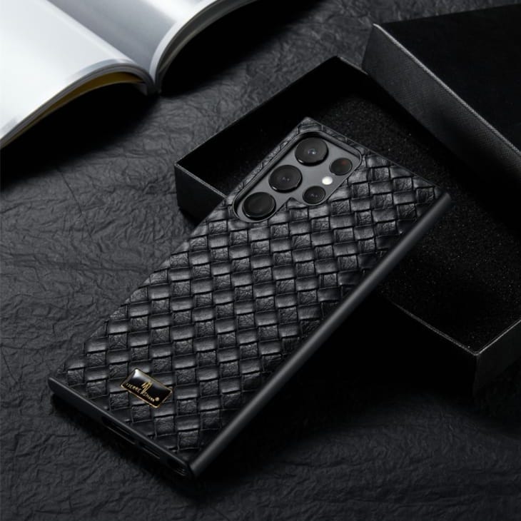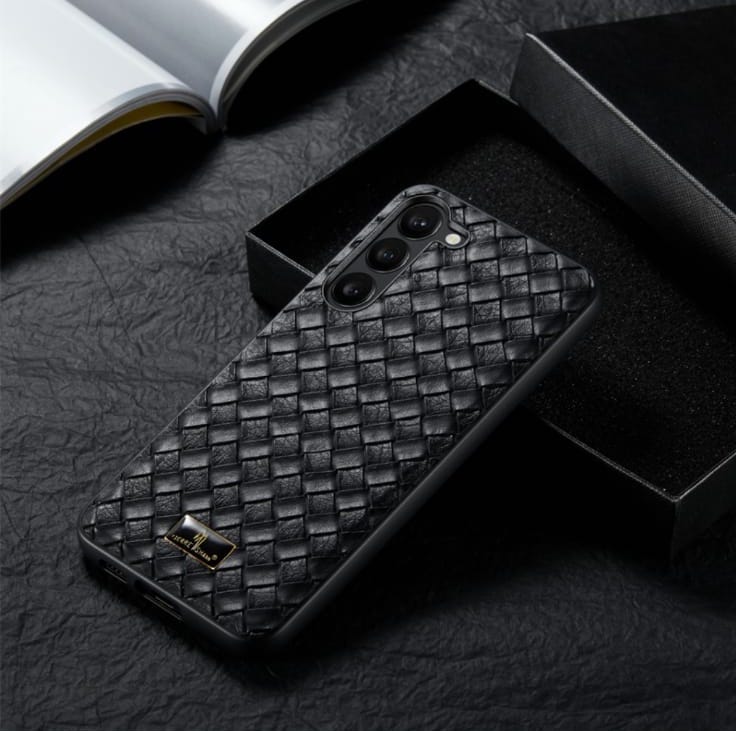 Have a look at our stylish Woven Grid Premium Leather Cover in Black in a sleek new design for Samsung Galaxy S23, Samsung Galaxy S23 Plus and Samsung Galaxy S23 Ultra, Samsung Galaxy S24, Samsung Galaxy S24 Plus and Samsung Galaxy S24 Ultra.