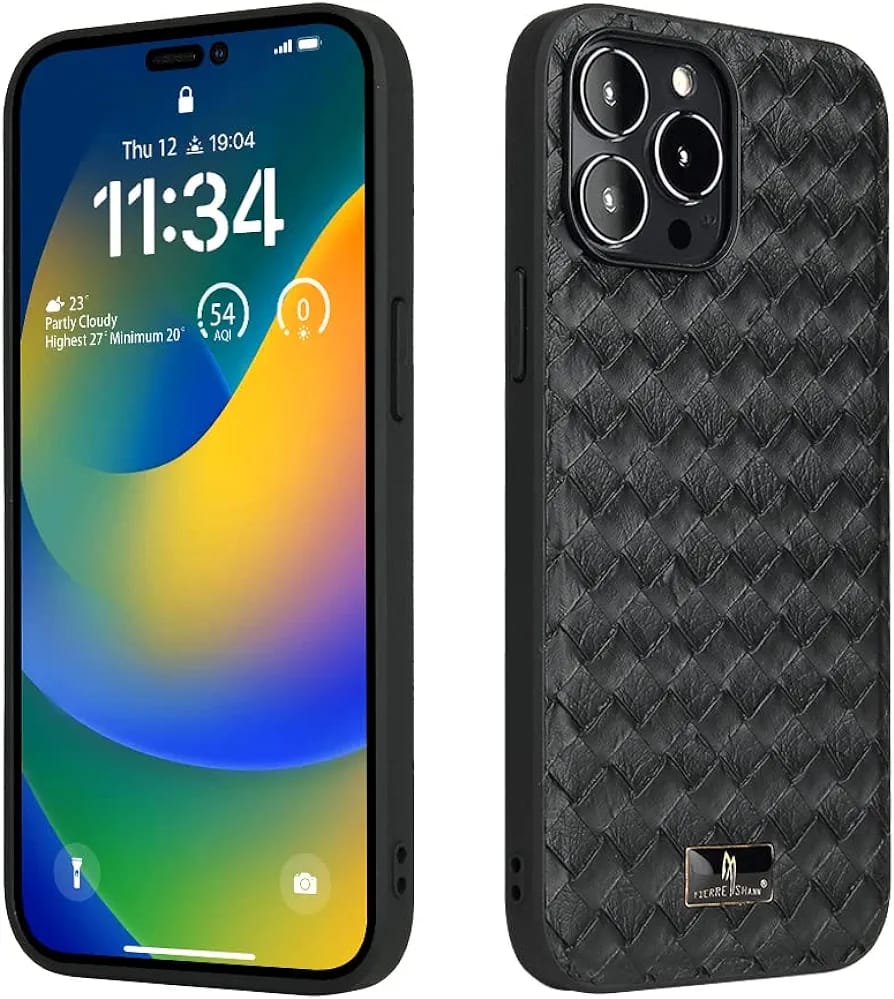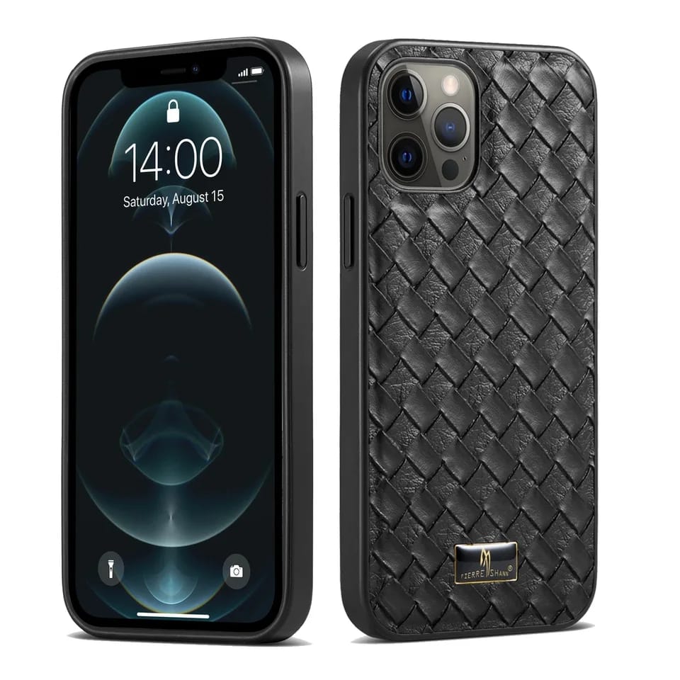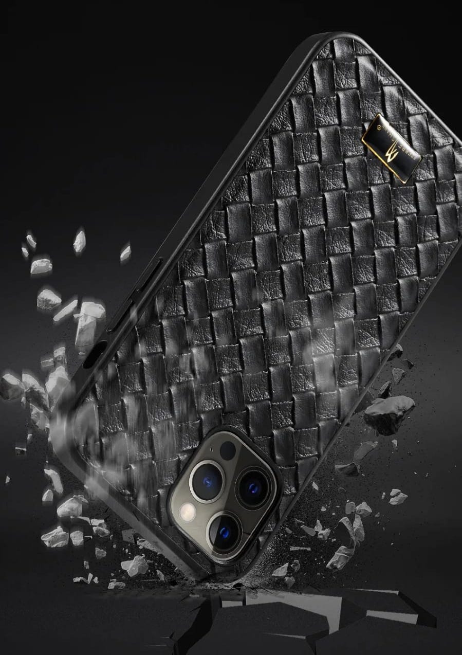 Have a look at our stylish Woven Grid Premium Leather Cover in Black in a sleek new design for iPhone 15 Pro and iPhone 15 Pro Max.