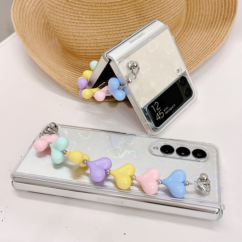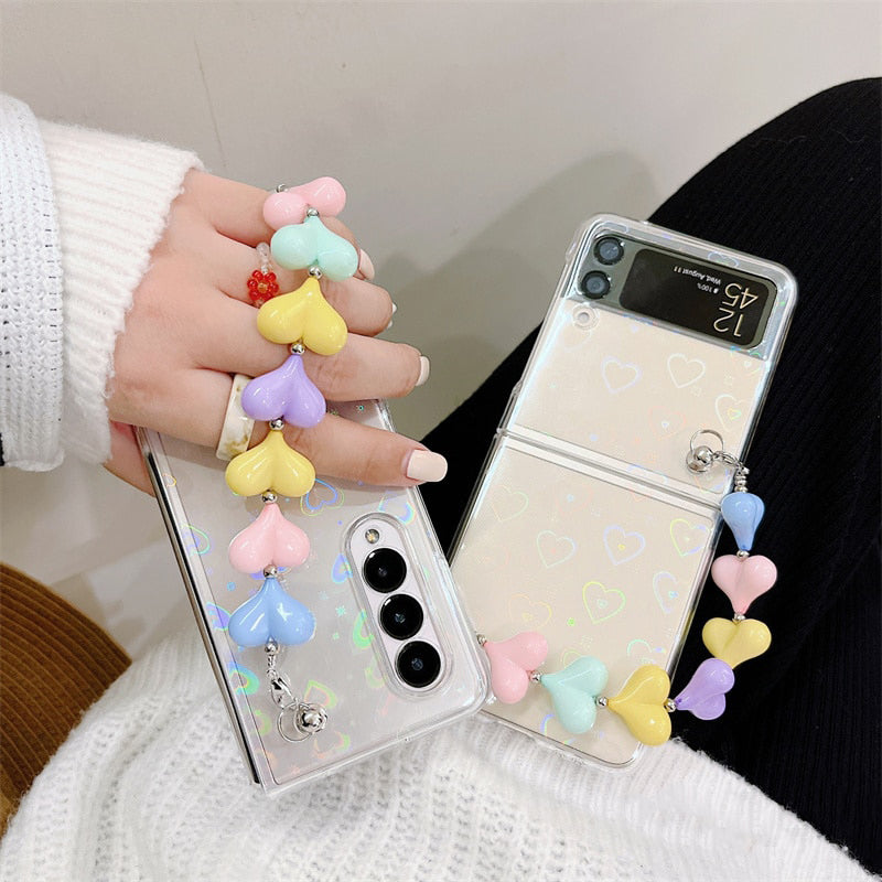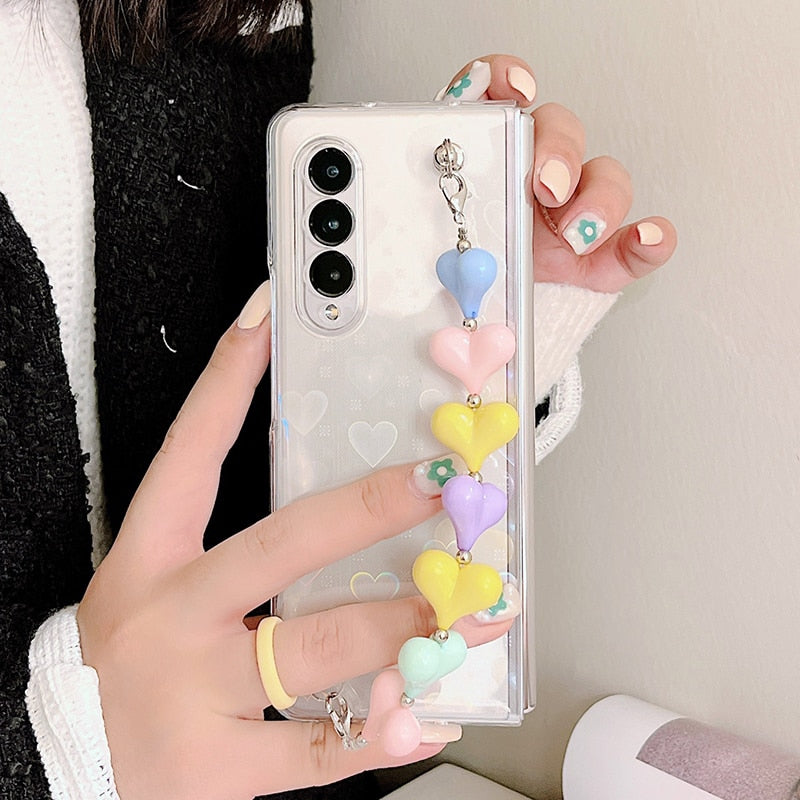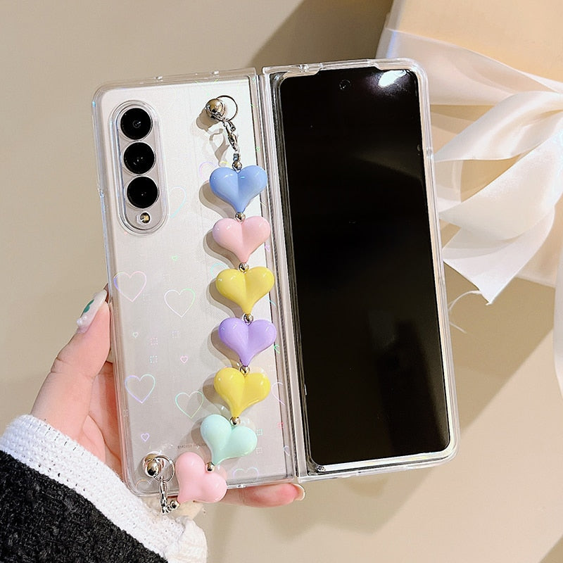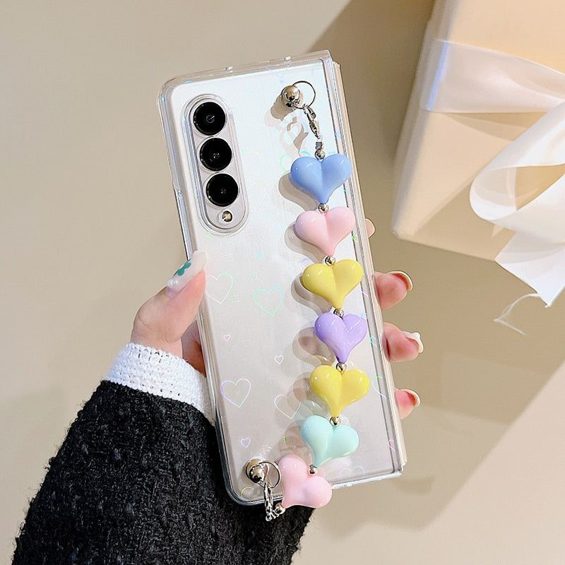 Zazzy Bling Colorful Hearts Bracelet Cover in a sleek new design for the Samsung Galaxy Z Fold 3.