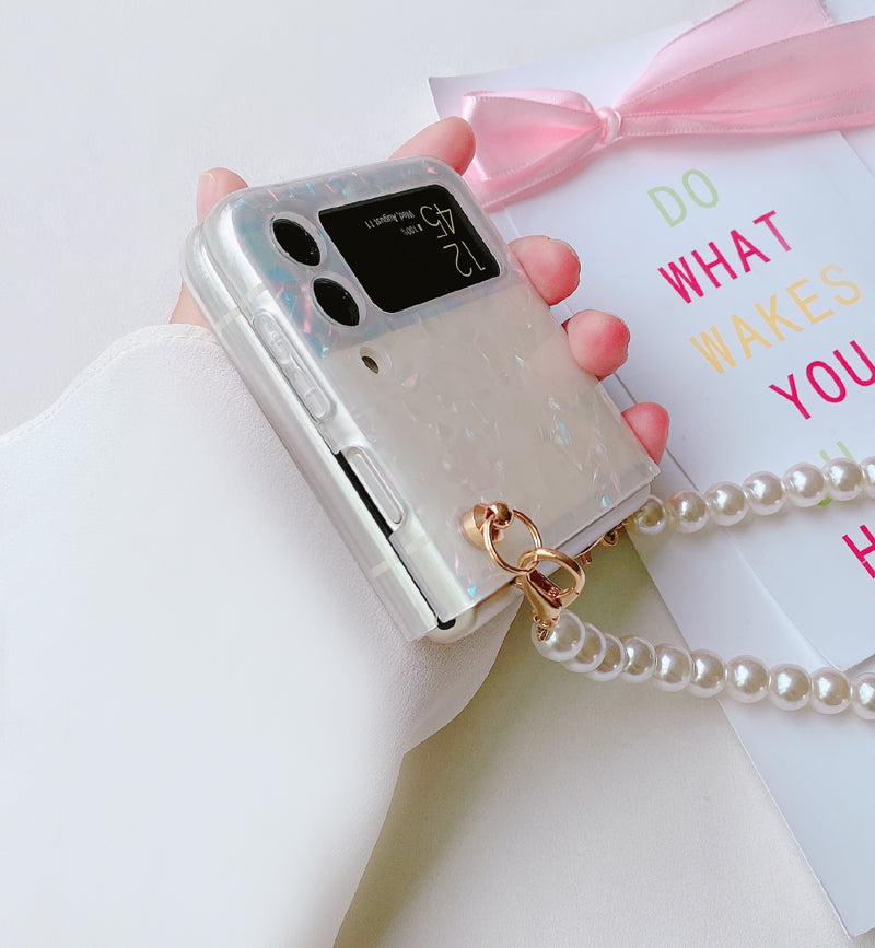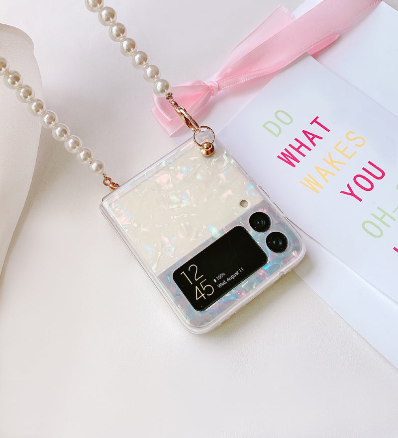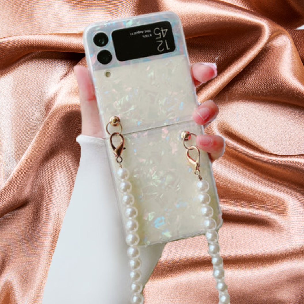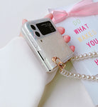 Check out this Zazzy Bling Pearl Chain Bracelet Cover in a sleek new design for Galaxy Flip 3. A perfect mix of luxury and elegance.