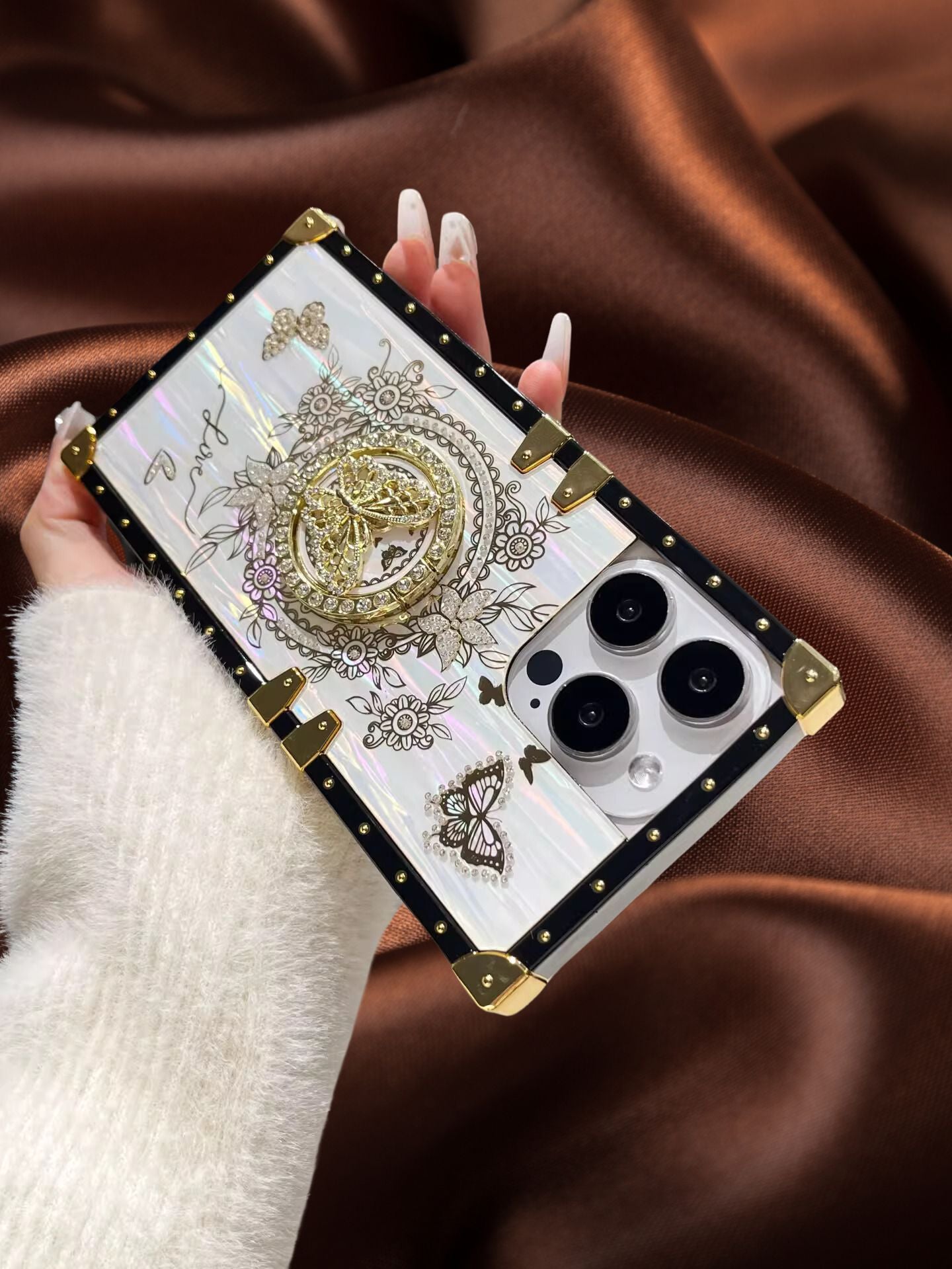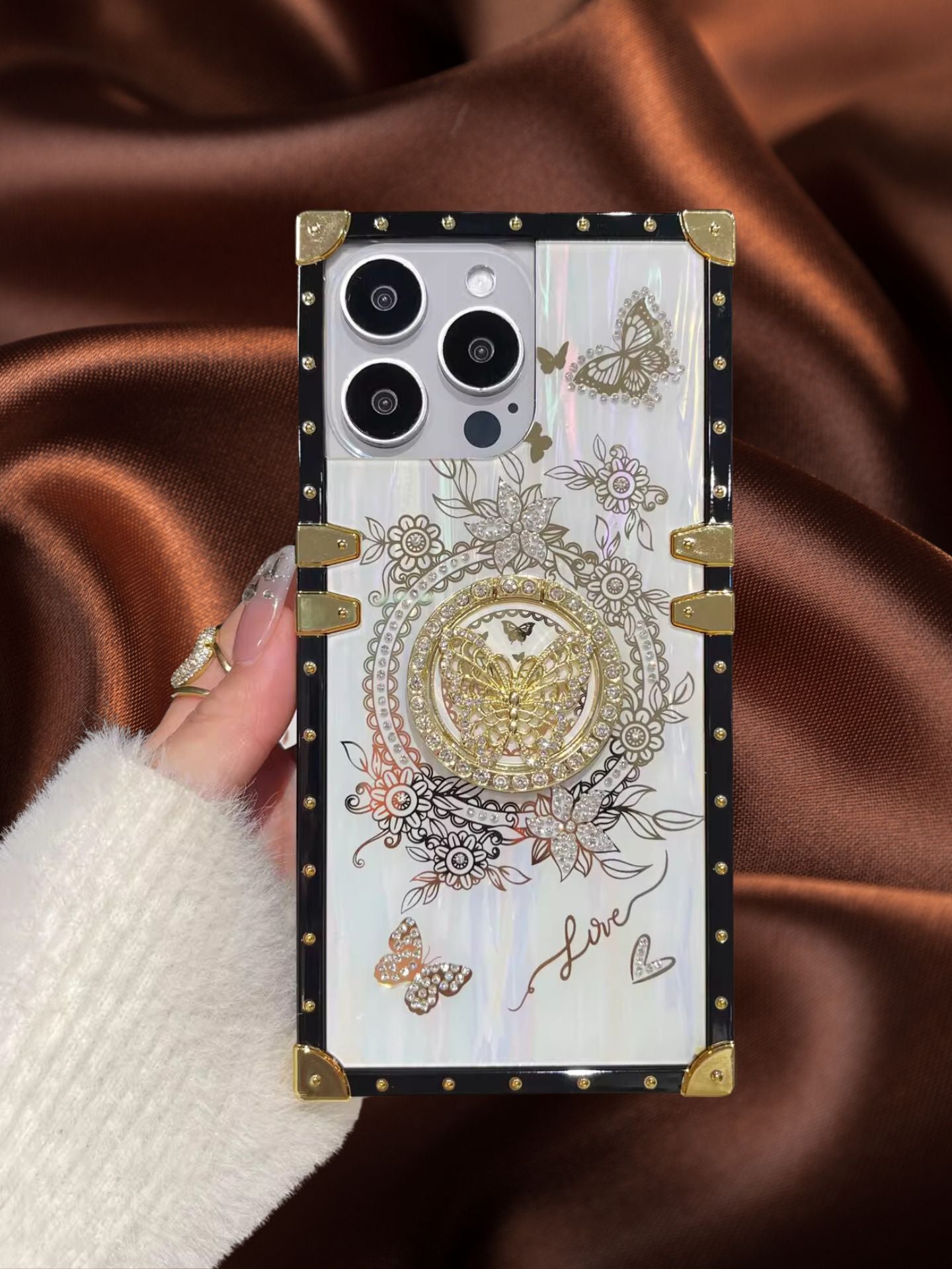 Zazzy Butterfly Rhinestones Ring Holder Luxury Cover comes with a stylish Ring Holder in a sleek new design for the iPhone 13, iPhone 13 Pro, iPhone 13 Pro Max, iPhone 14, iPhone 14 Pro, and iPhone 14 Pro Max, iPhone 15 Pro, and iPhone 15Pro Max, iPhone 16 Pro, and iPhone 16 Pro Max.